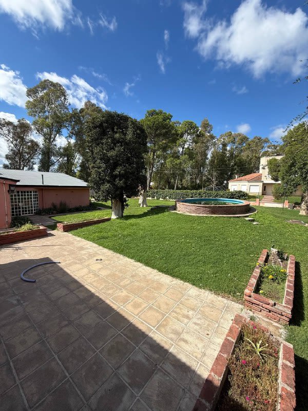 Casa en la esquina de Lauquen y Calquín, desarrollada sobre dos lotes ampliamente parquizados. Tiene tres dormitorios ( dos chicos y uno grande con su baño en suitte), living comedor amplio, estar intimo, baño completo para recepcion y para los dos dormitorios , jardin de invierno grande, quincho amplio con baño, pileta y gran parque muy bien forestado.