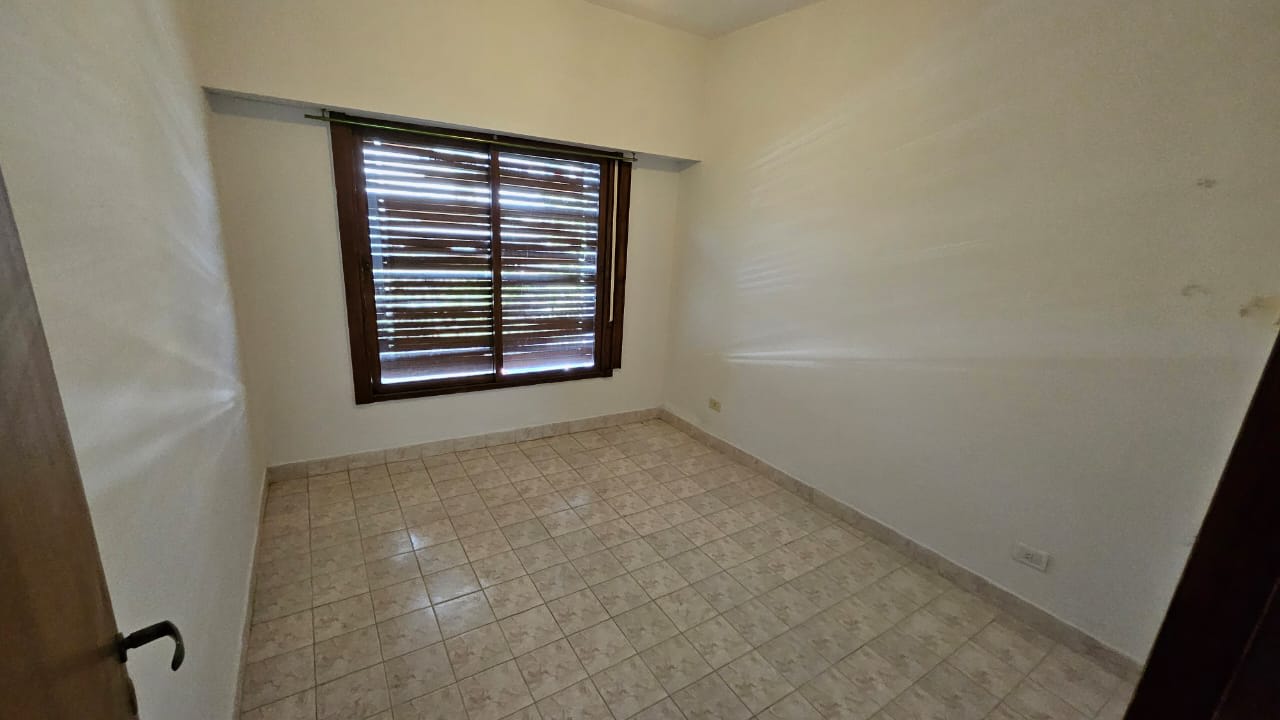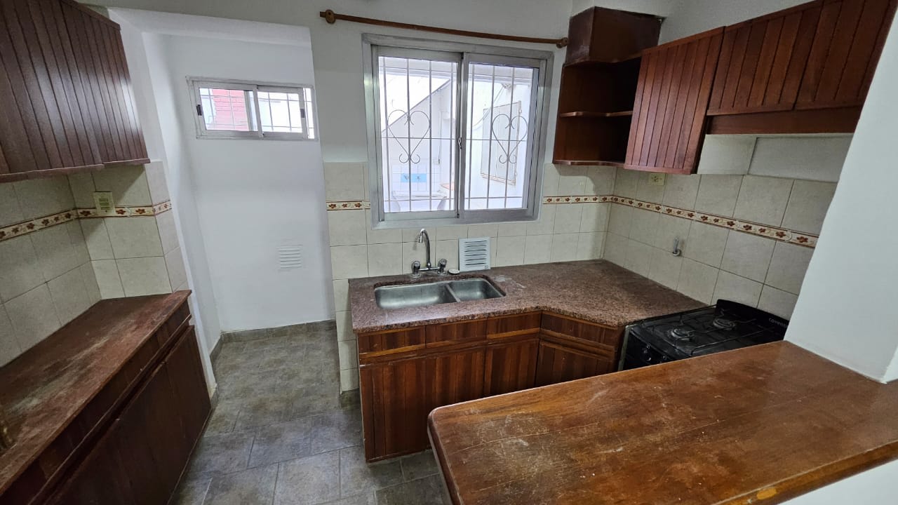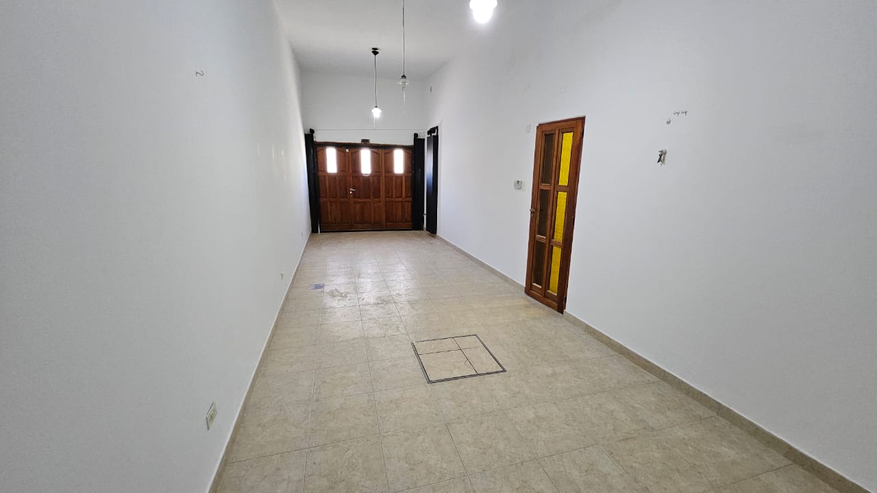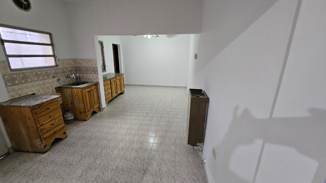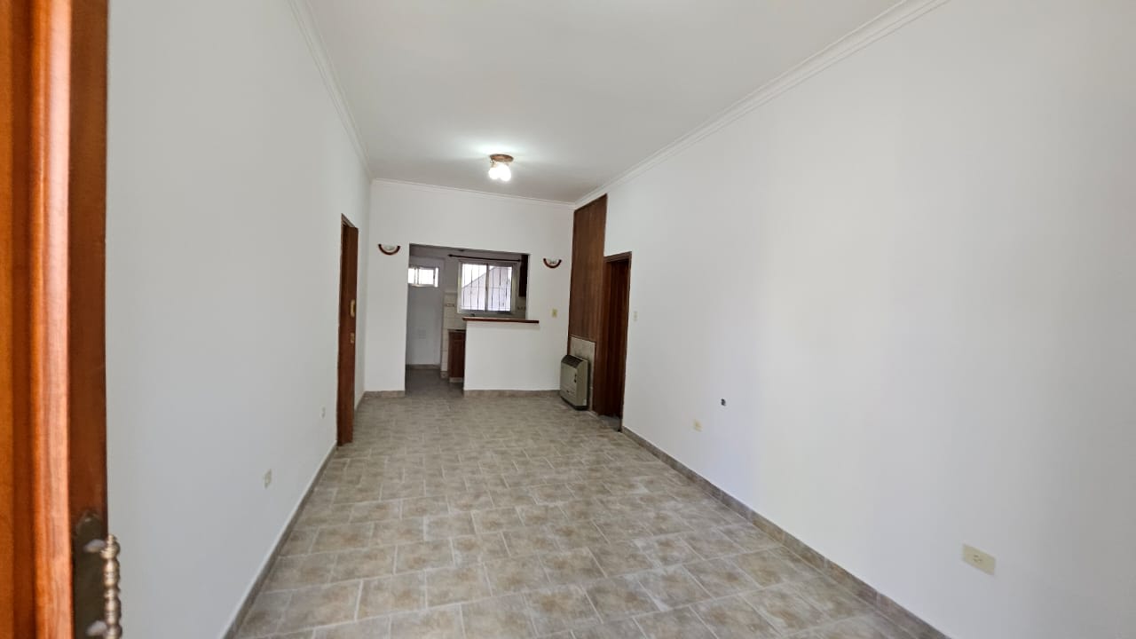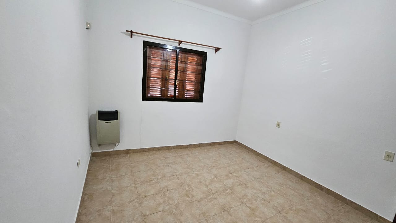 Planta baja : living comedor amplio con cocina semi integrada por una barra , pasillo con dos dormitorios, uno al frente con placar y otro mira al patio sin placar , baño completo , garaje cubierto para dos autos , quincho incorporado a la casa con baño propio .