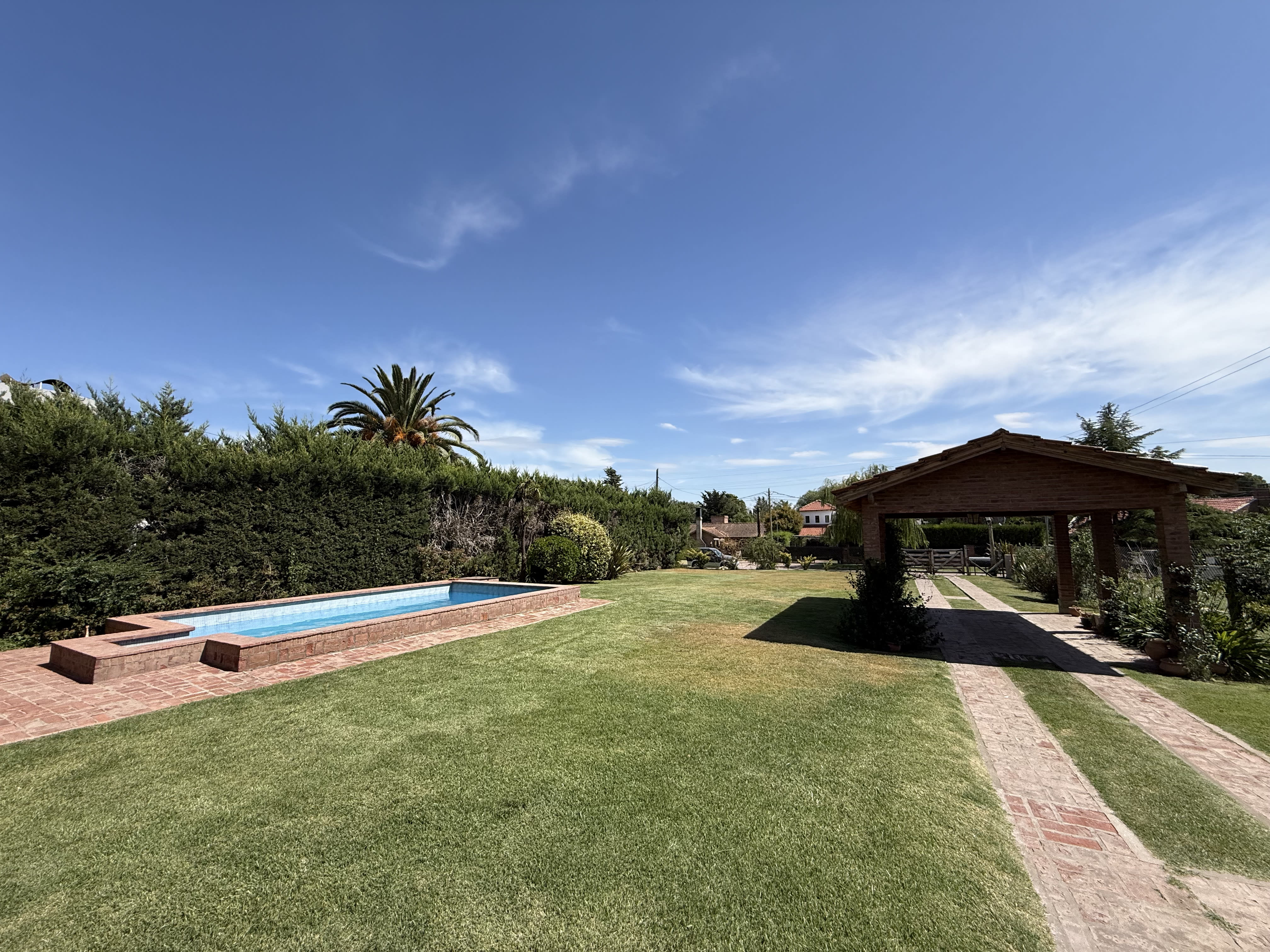Hermosa propiedad con amplio parque, pileta y sector de quincho con parrilla, ideal para disfrutar al aire libre en un entorno tranquilo y residencial.