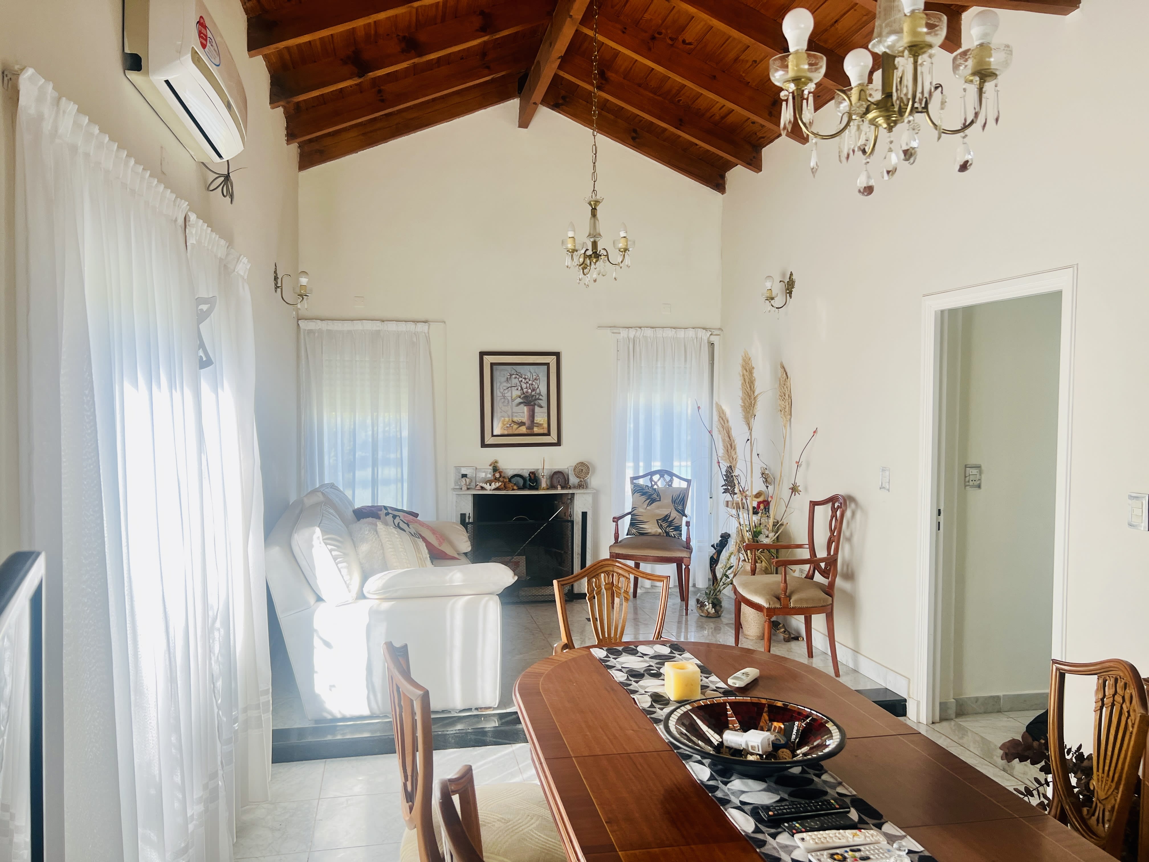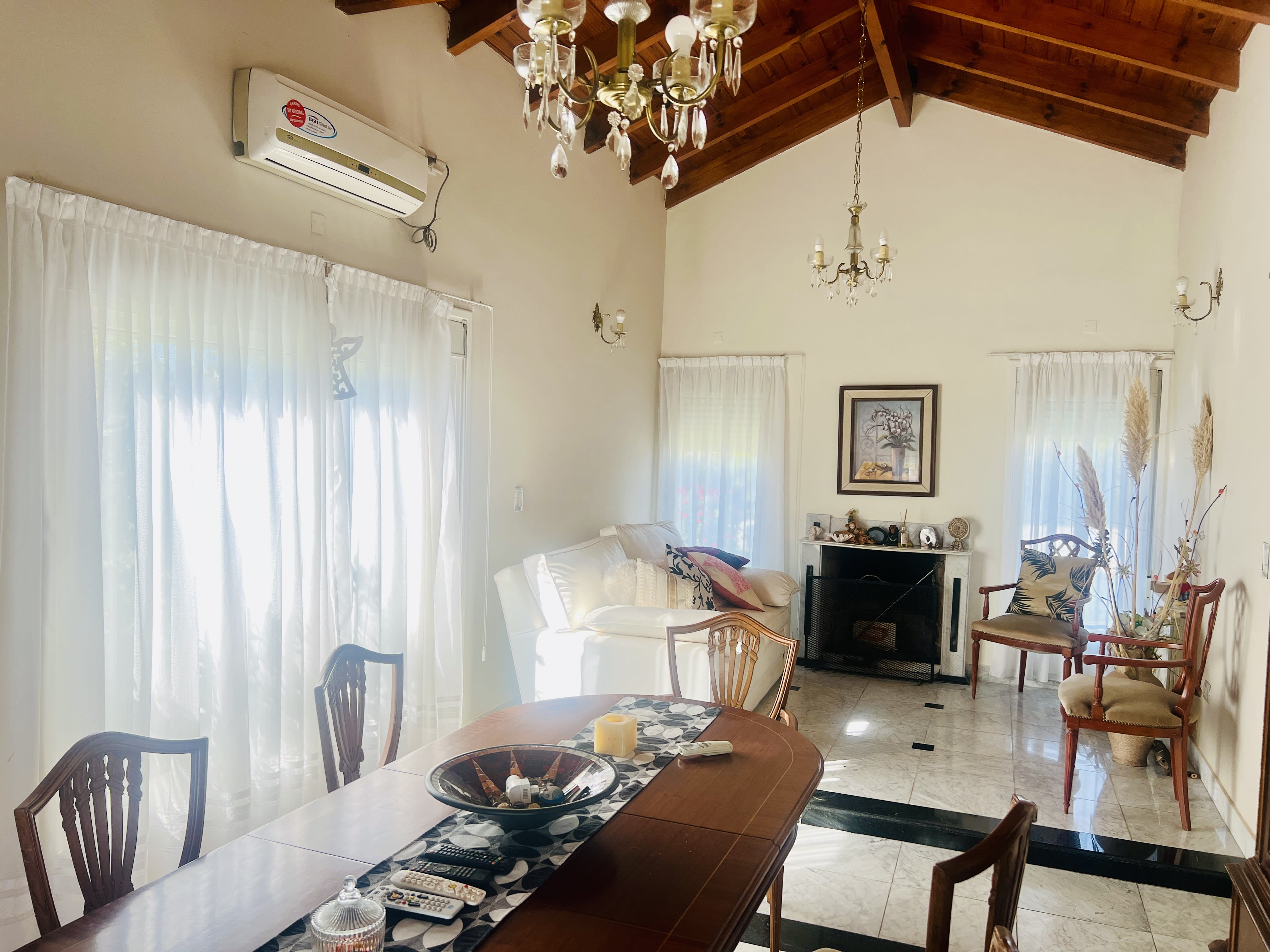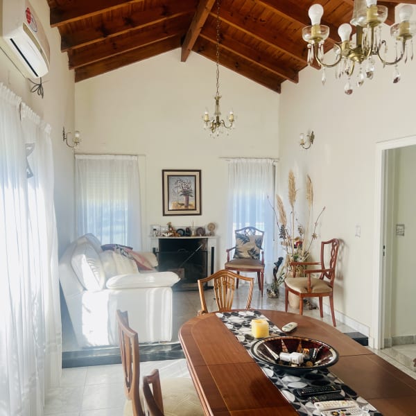 La casa también incluye una estufa hogar que proporciona confort durante los días más fríos, mientras que la calefacción por caldera y el aire acondicionado en el estar comedor y en el dormitorio principal aseguran un clima agradable durante todo el año. En el exterior, una galería cubierta y una mediana piscina invitan a disfrutar de momentos de relax y esparcimiento, rodeados de un bonito jardín que complementa el entorno. Esta propiedad, con 16 años de antigüedad, se presenta como apta para crédito, lo que la convierte en una opción accesible para quienes buscan una inversión segura y rentable.