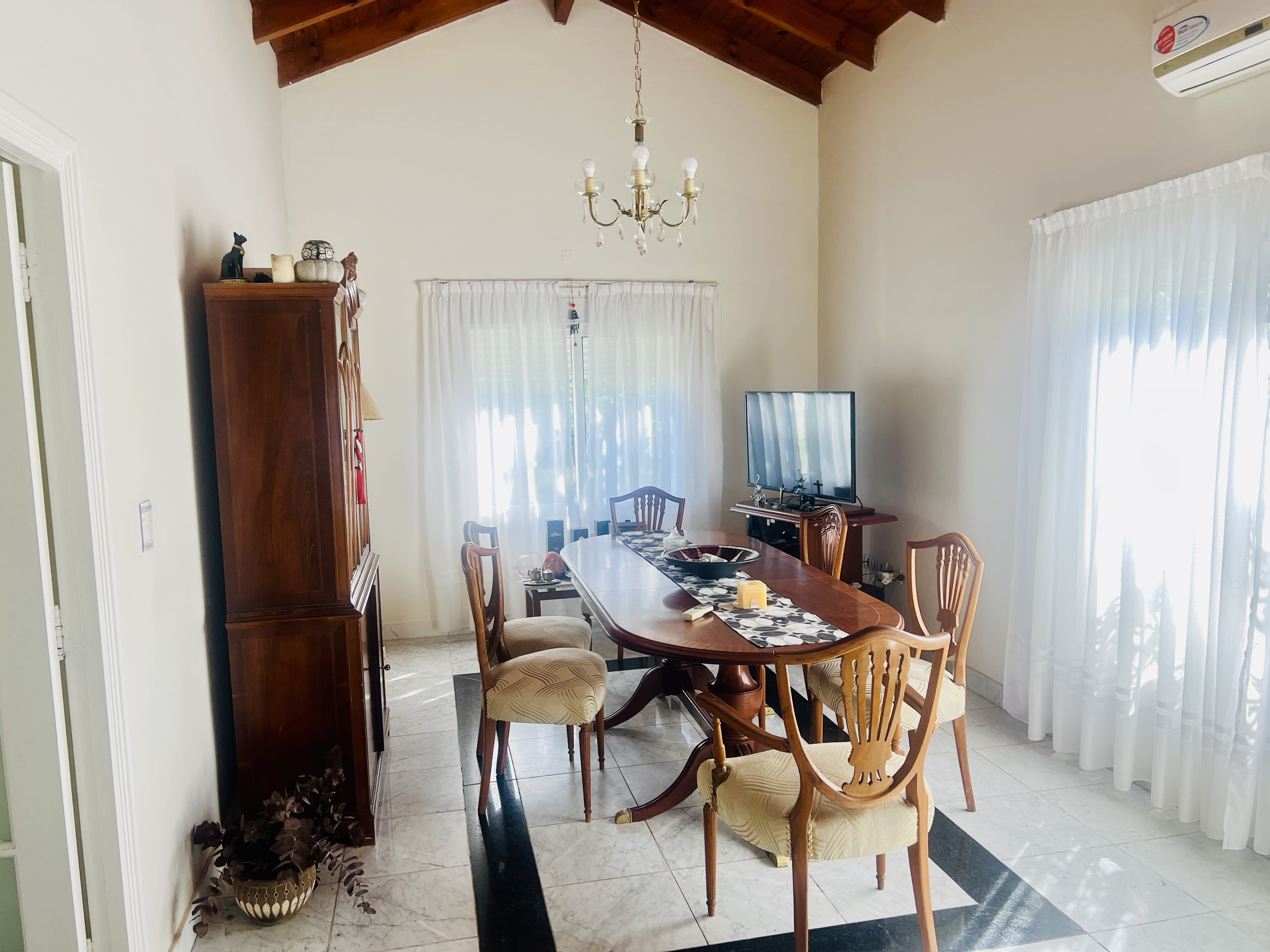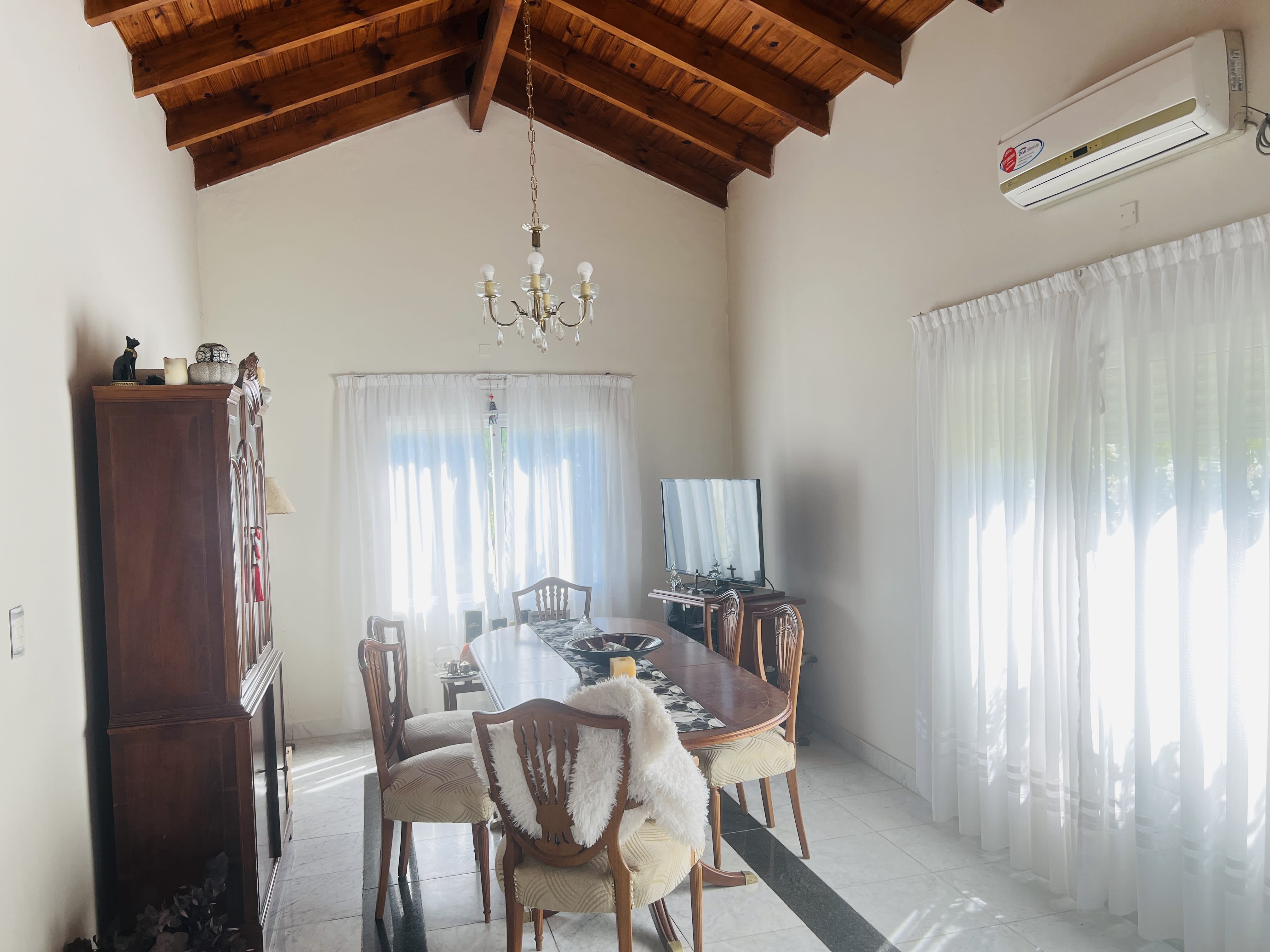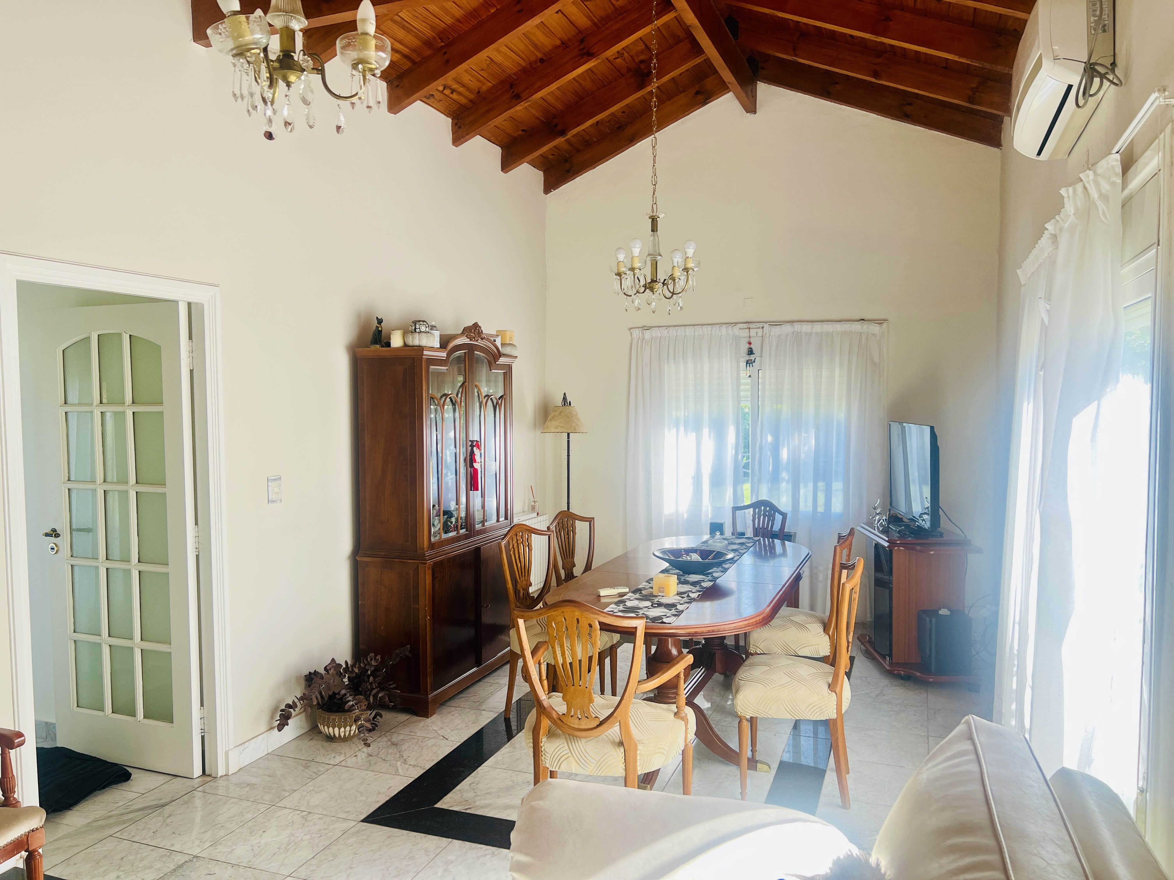 La casa también incluye una estufa hogar que proporciona confort durante los días más fríos, mientras que la calefacción por caldera y el aire acondicionado en el estar comedor y en el dormitorio principal aseguran un clima agradable durante todo el año. En el exterior, una galería cubierta y una mediana piscina invitan a disfrutar de momentos de relax y esparcimiento, rodeados de un bonito jardín que complementa el entorno. Esta propiedad, con 16 años de antigüedad, se presenta como apta para crédito, lo que la convierte en una opción accesible para quienes buscan una inversión segura y rentable.