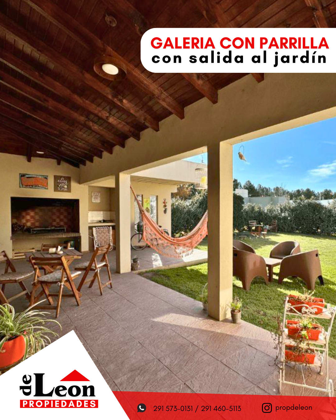 - Galería semicubierta con parrilla