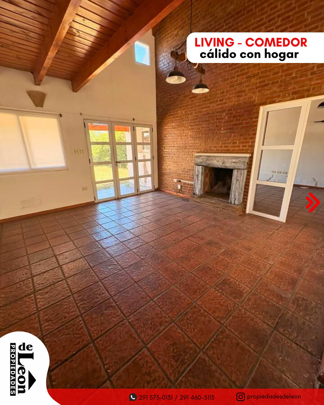 - Hogar a leña y techos de madera natural