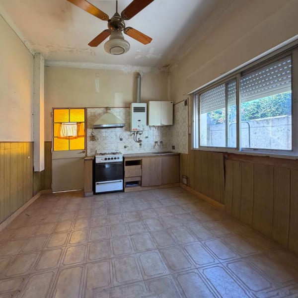 Casa a refaccionar que consta de 2 dormitorios, living, cocina, baño, patio y garage. Forma parte de un PH. Al frente.