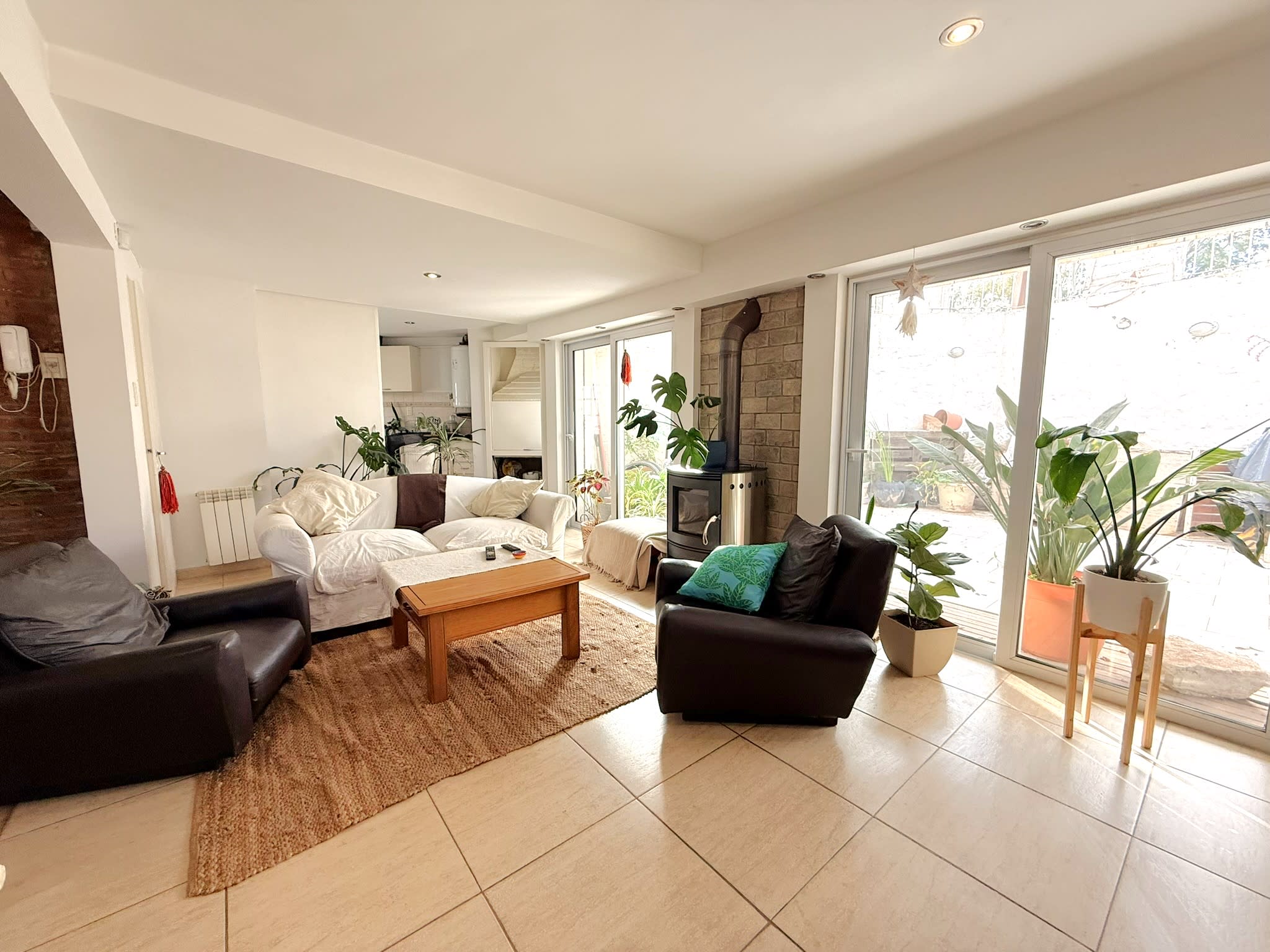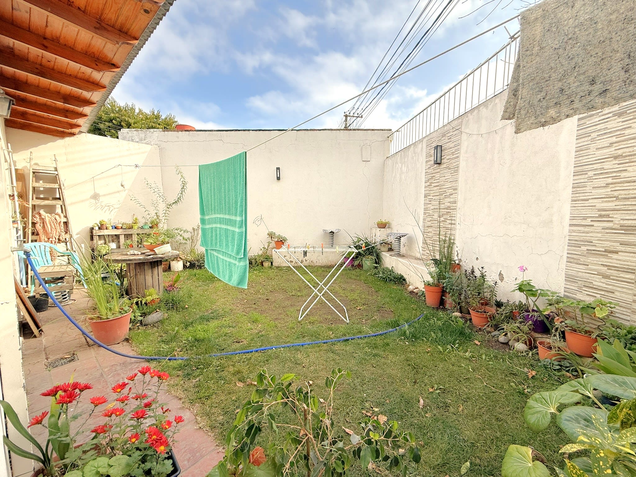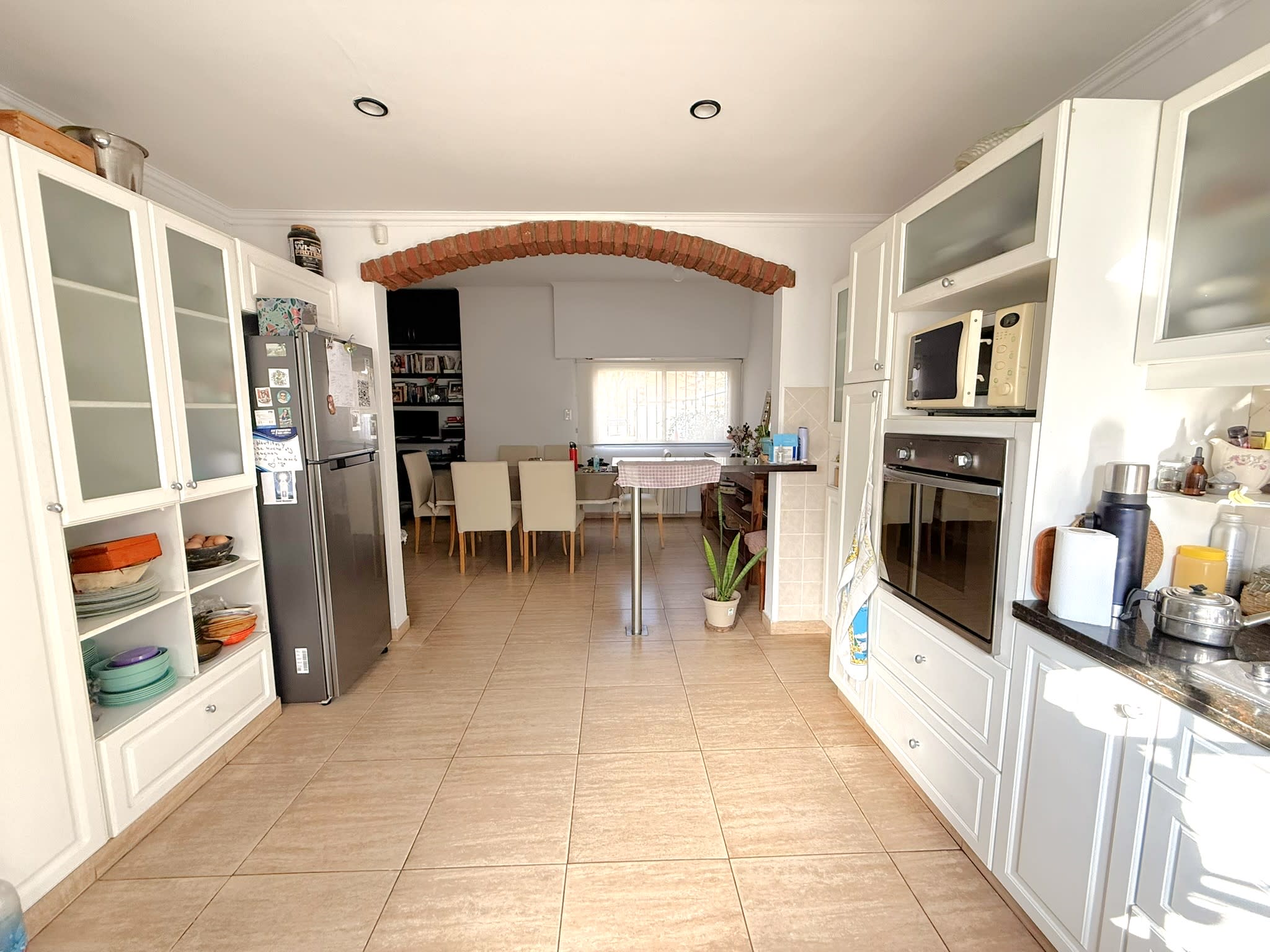 PB: Living con grandes ventanales, conectado con puertas corredizas al quincho con fogón. Cocina comedor integrada por barra. Baño con ducha y patio trasero (mediano).- Cochera semi cubierta .-