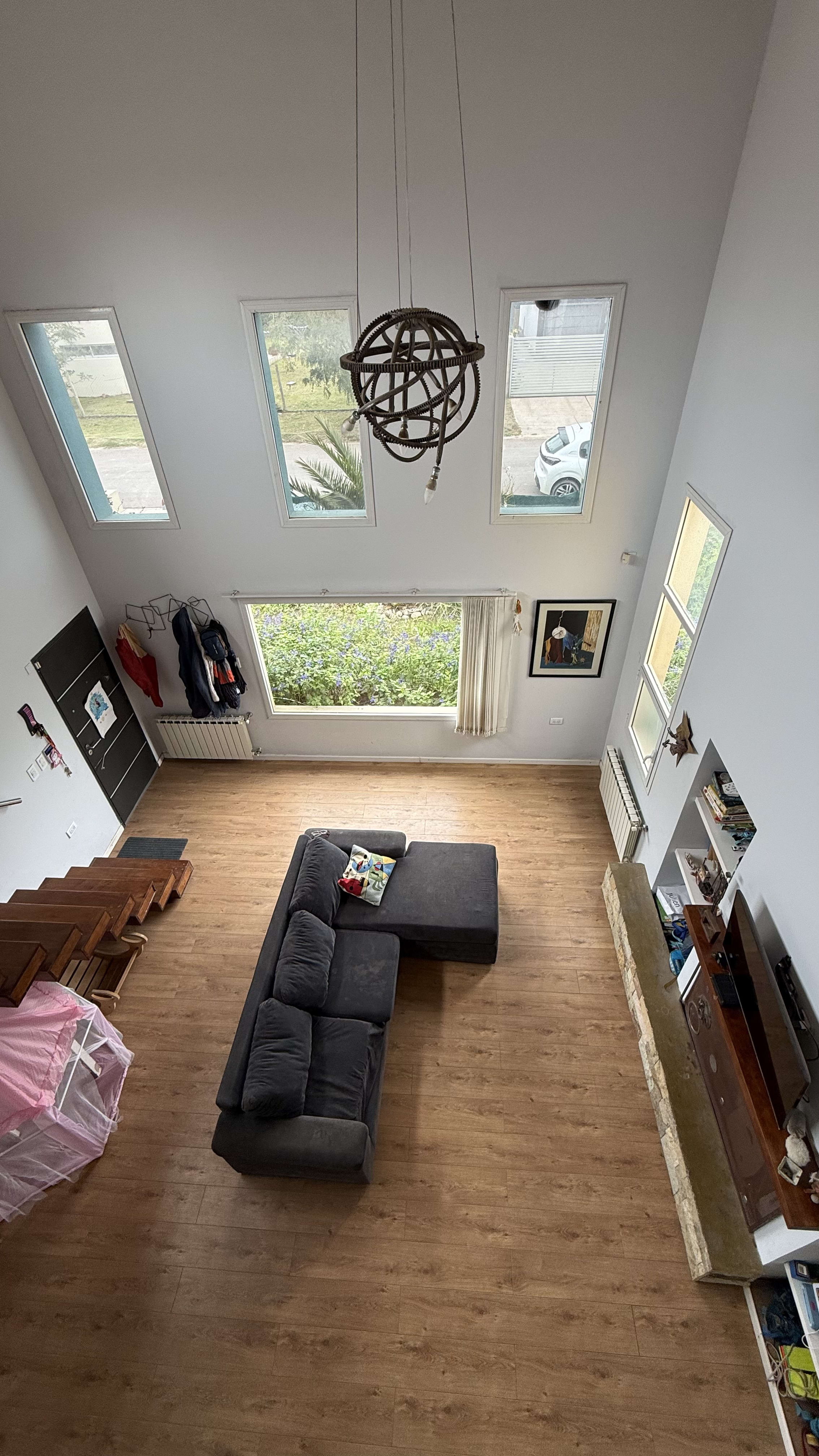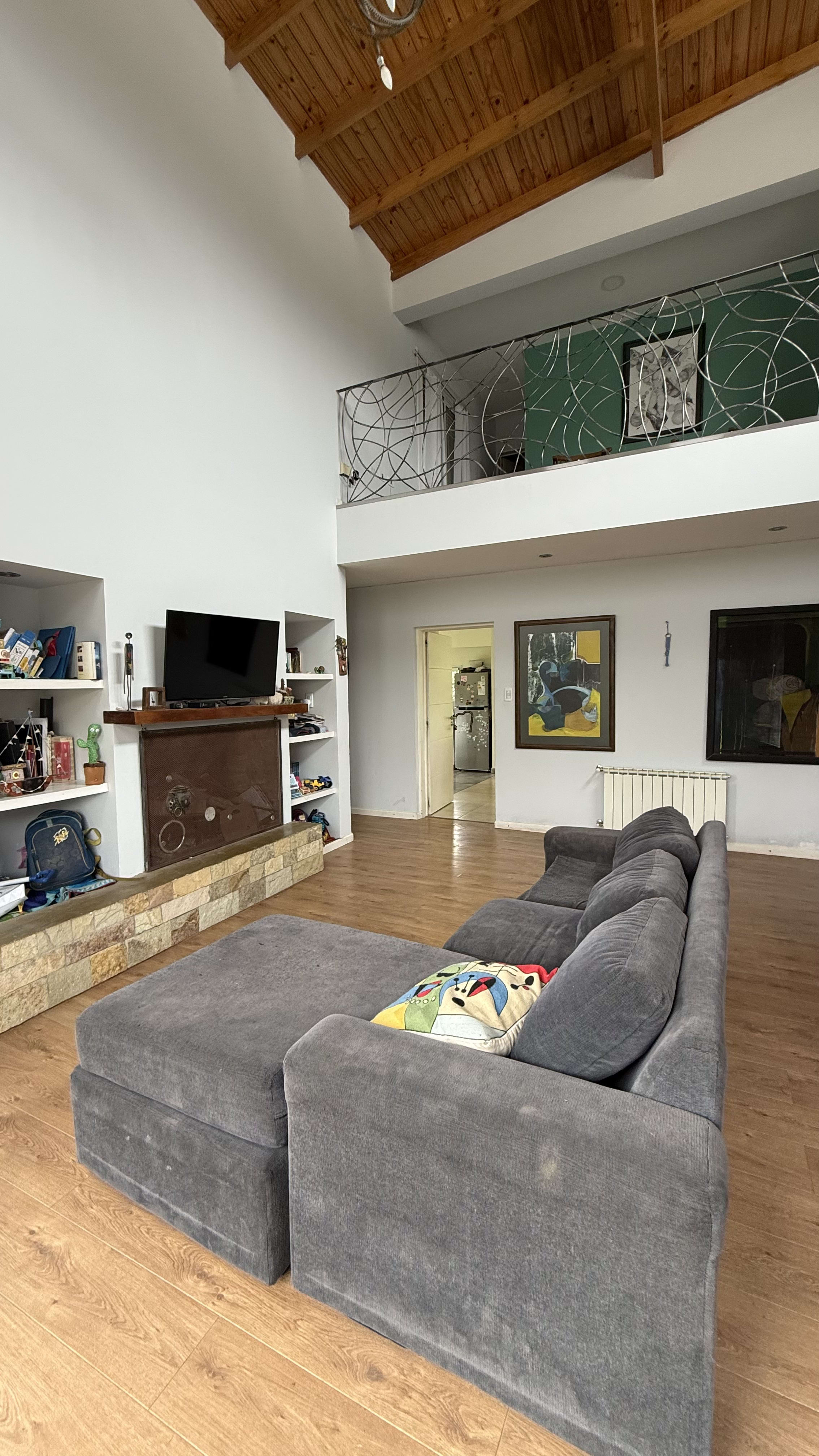 Escritorio que balconea el living de doble altura