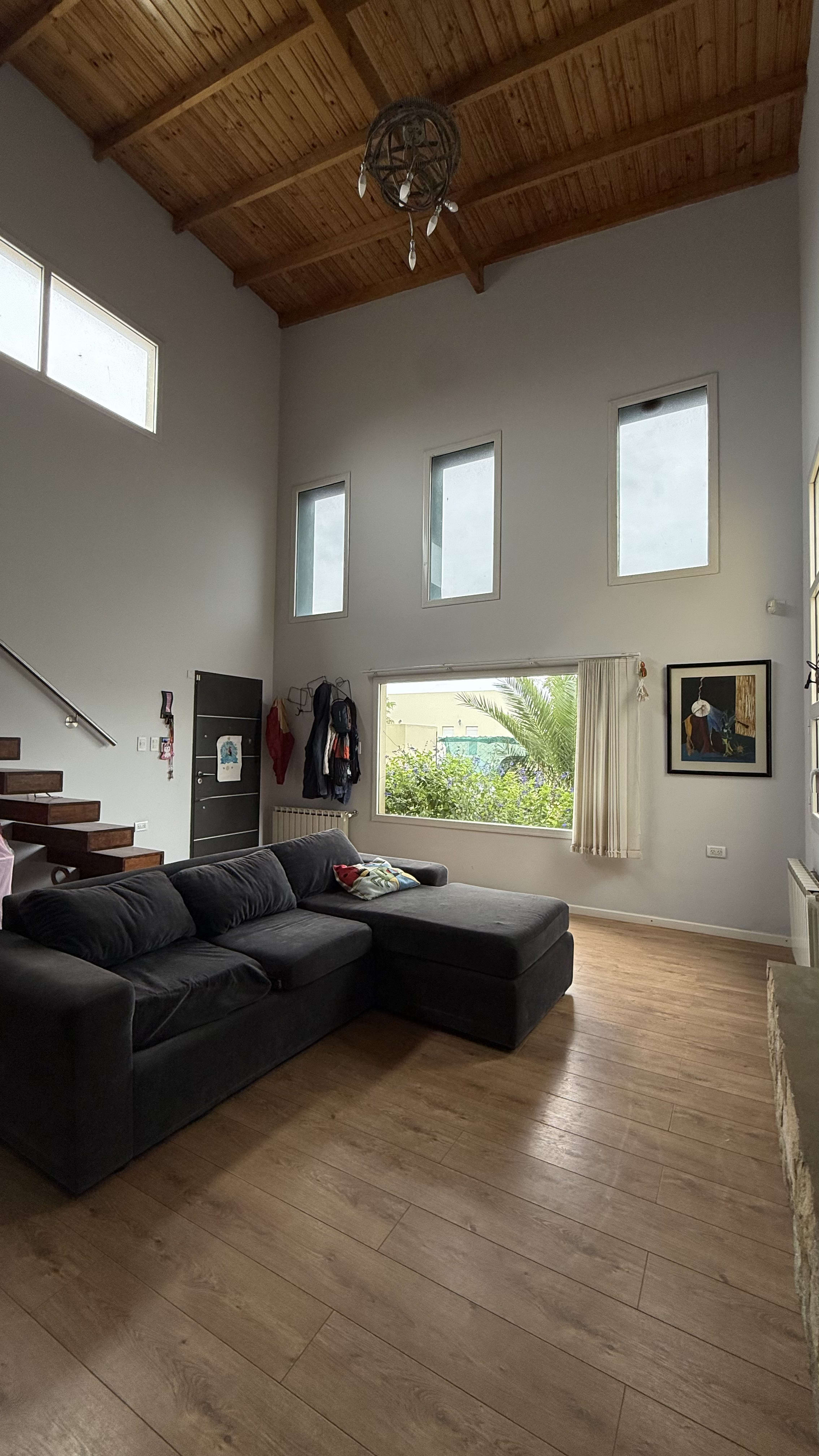 Living al frente, super luminoso, con doble altura y hogar a leña