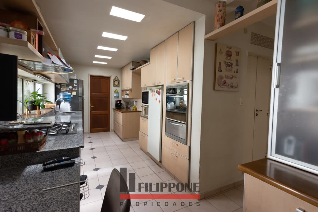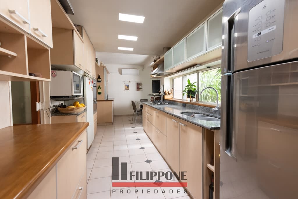 Sus más de 310m2 cubiertos están compuestos por Hall de entrada, gran living con grandes ventanales que miran al patio, comedor, cocina amplia muy bien equipada con muebles y con buen espacio para el comedor diario, muy luminosa, tres dormitorios, principal en suite.