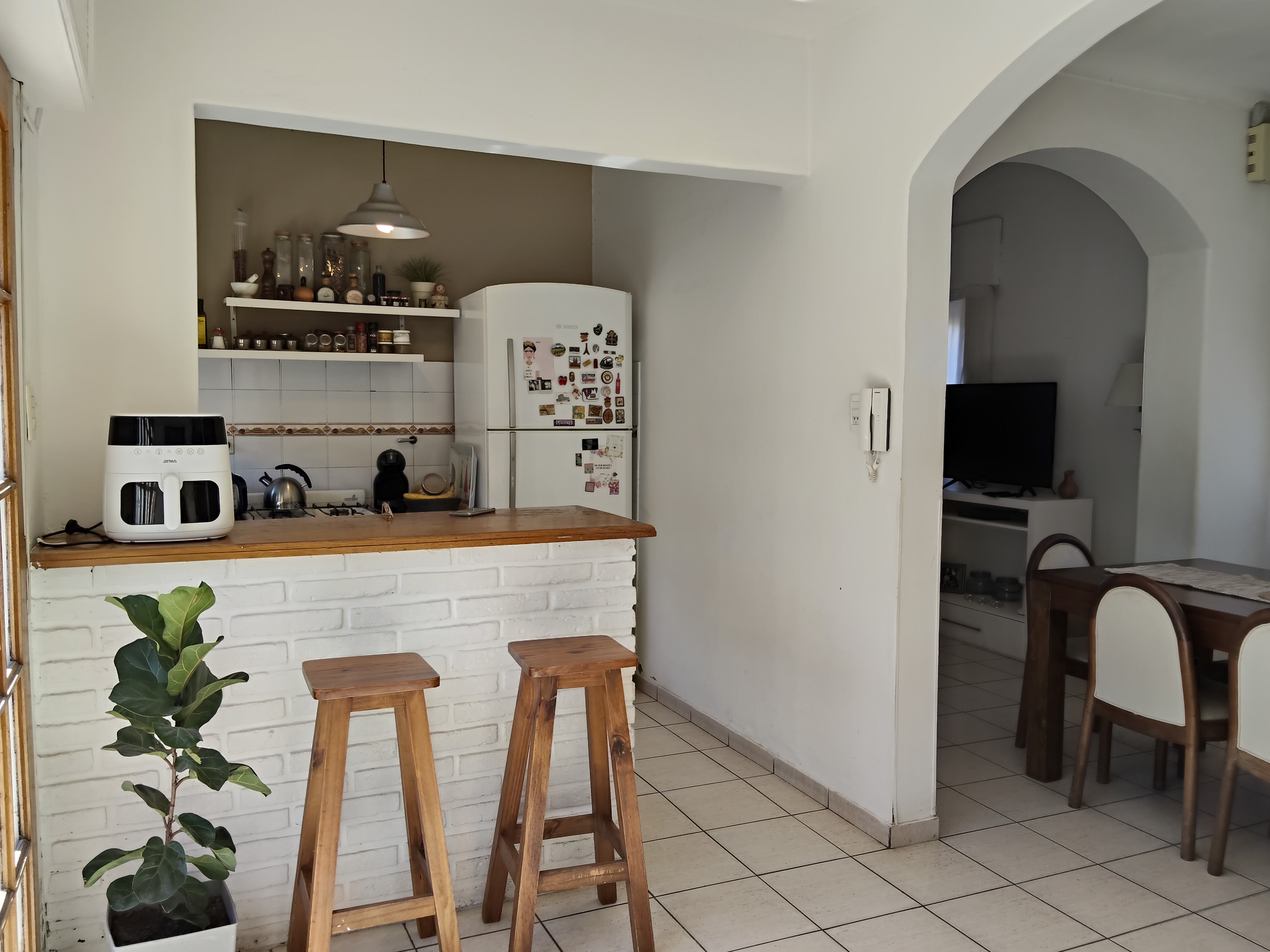 Casa de barrio, funcional y cómoda, desarrollada en una sola planta. Ubicada en calle Santa Fe N° 899, esquina Ingeniero Luiggi del barrio Pedro Pico y distribuida de la siguiente manera: Living; comedor diario con puerta-ventana al patio, integrado a la cocina por barra desayunadora; tres dormitorios, el principal con vestidor, otro de dimensiones estándar y uno más pequeño; baño completo; y hacia el otro sector del espacio social encontramos un amplio garage/quincho; baño completo y a continuación un cuarto dormitorio de generosas dimensiones; finalmente, un hermoso patio mediano, con parte seca y parte verde.