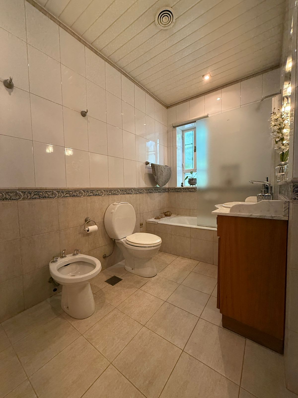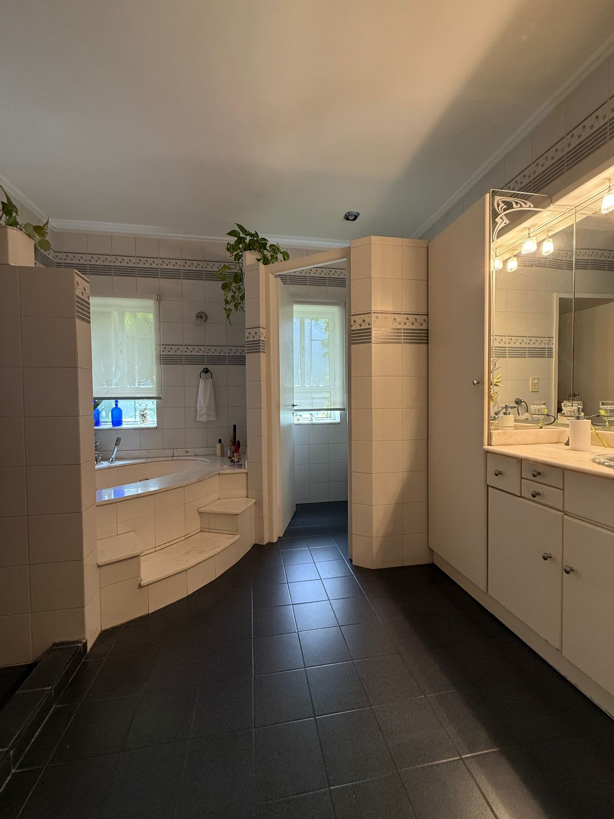 Dormitorio principal en suite, con un amplio baño que incorpora zona de ducha, sanitarios separados e hidromasaje.