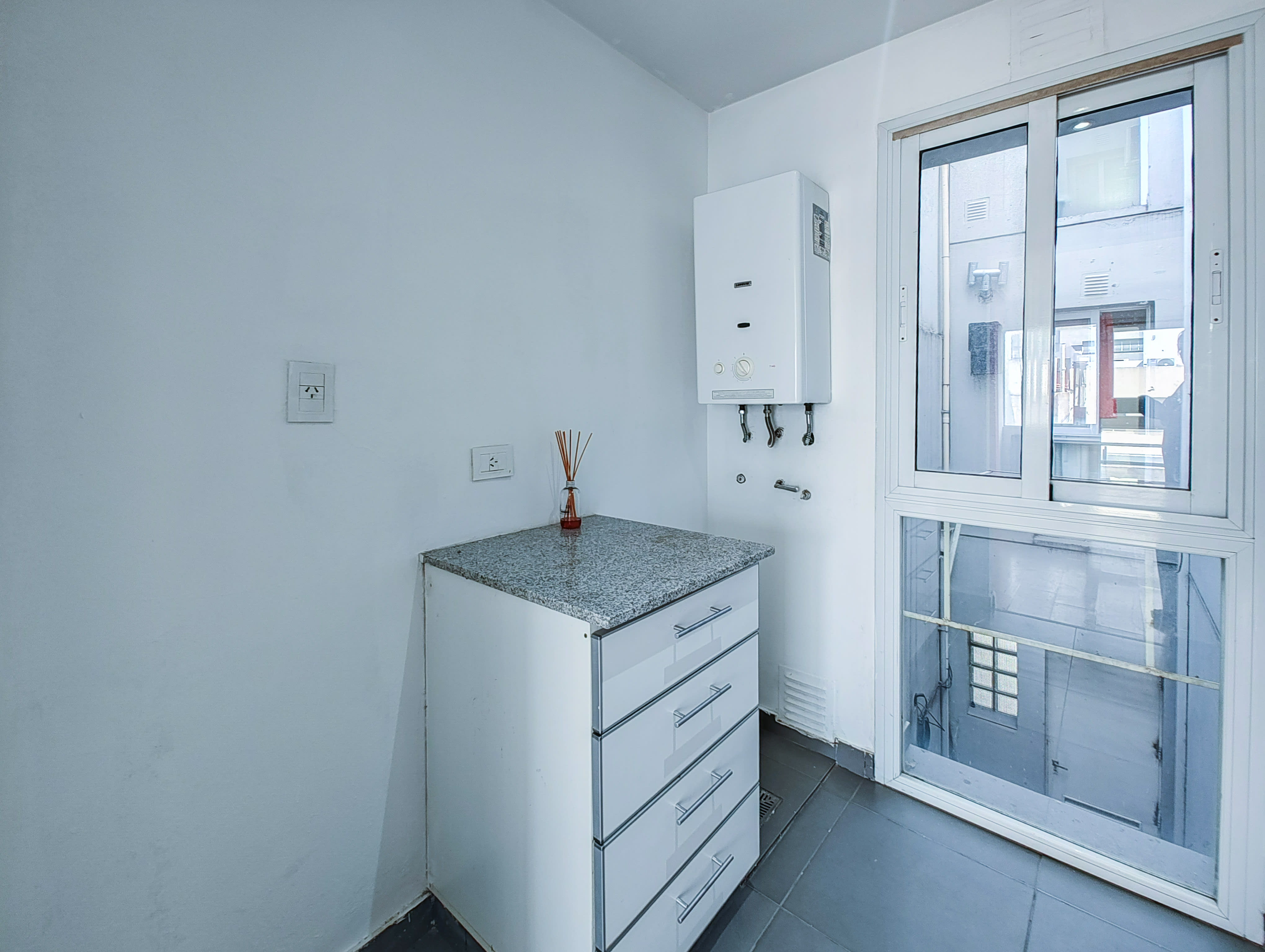 Compuesto de un ambiente, cocina separada con espacio para heladera, lavarropas y un baño completo.