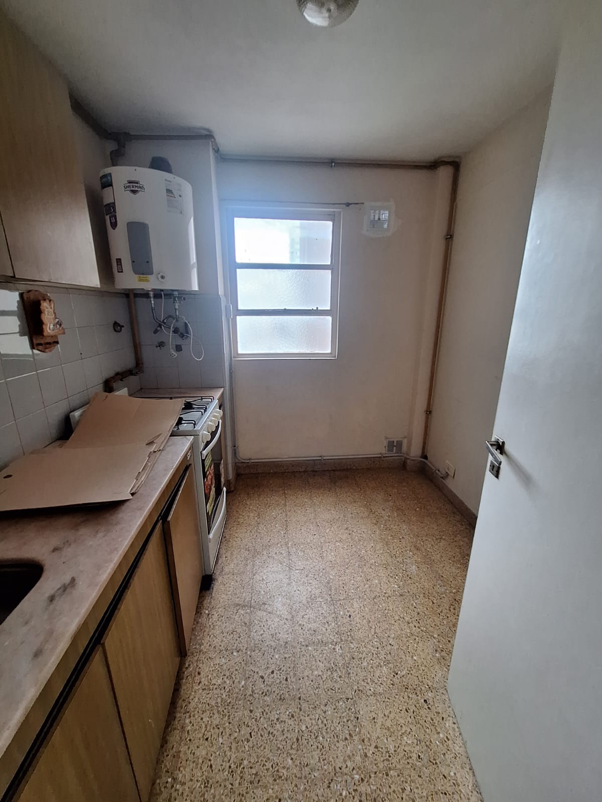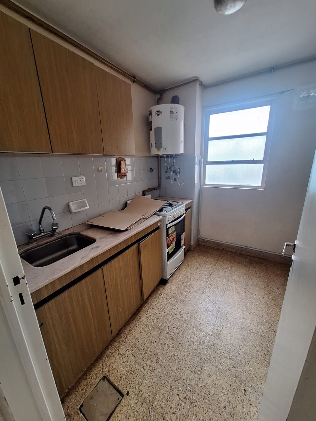 Cocina separada, living comedor, dormitorio con placard
