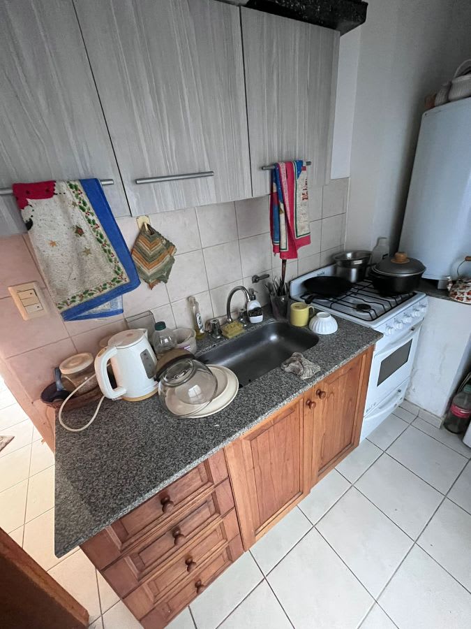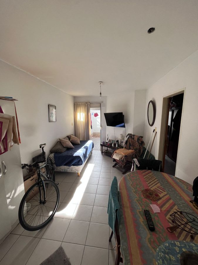 Departamento en venta al contrafrente de 1 dormitorio en planta baja con dos patios, uno seco y otro con parte verde. Baño completo, estar, cocina independiente, calefaccion por calefactore (uno en el living-comedor y otro en el dormitorio.