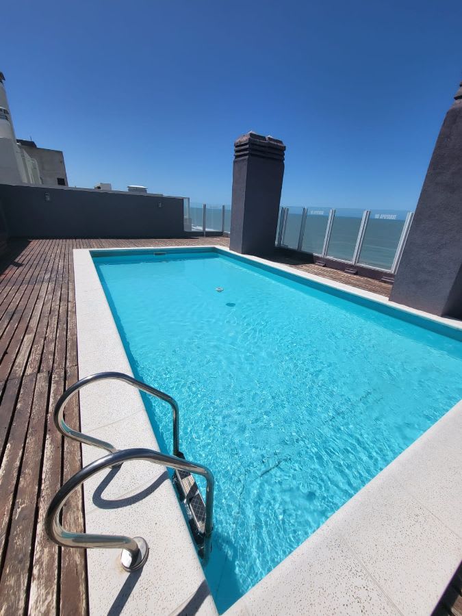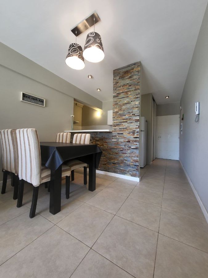 Departamento en venta en Costanera Este 350. Monte Hermoso. Departamento moderno, excelente opcion de inversion y para disfrutar todo el año. Cocina integrada con barra desayunadora. Estar amplio y luminoso con salida a balcon con cortinas black out. Un dormitorio con amplio placard y cortinas black out. Baño completo y muy comodo. Calefaccion por radiadores y aberturas con DVH. Espacio de lavado. Amplio placard al ingreso del departamento. Con cochera y baulera. Contrafrente. Edificio con quincho con parrilla en terraza y gran solarium con pileta.