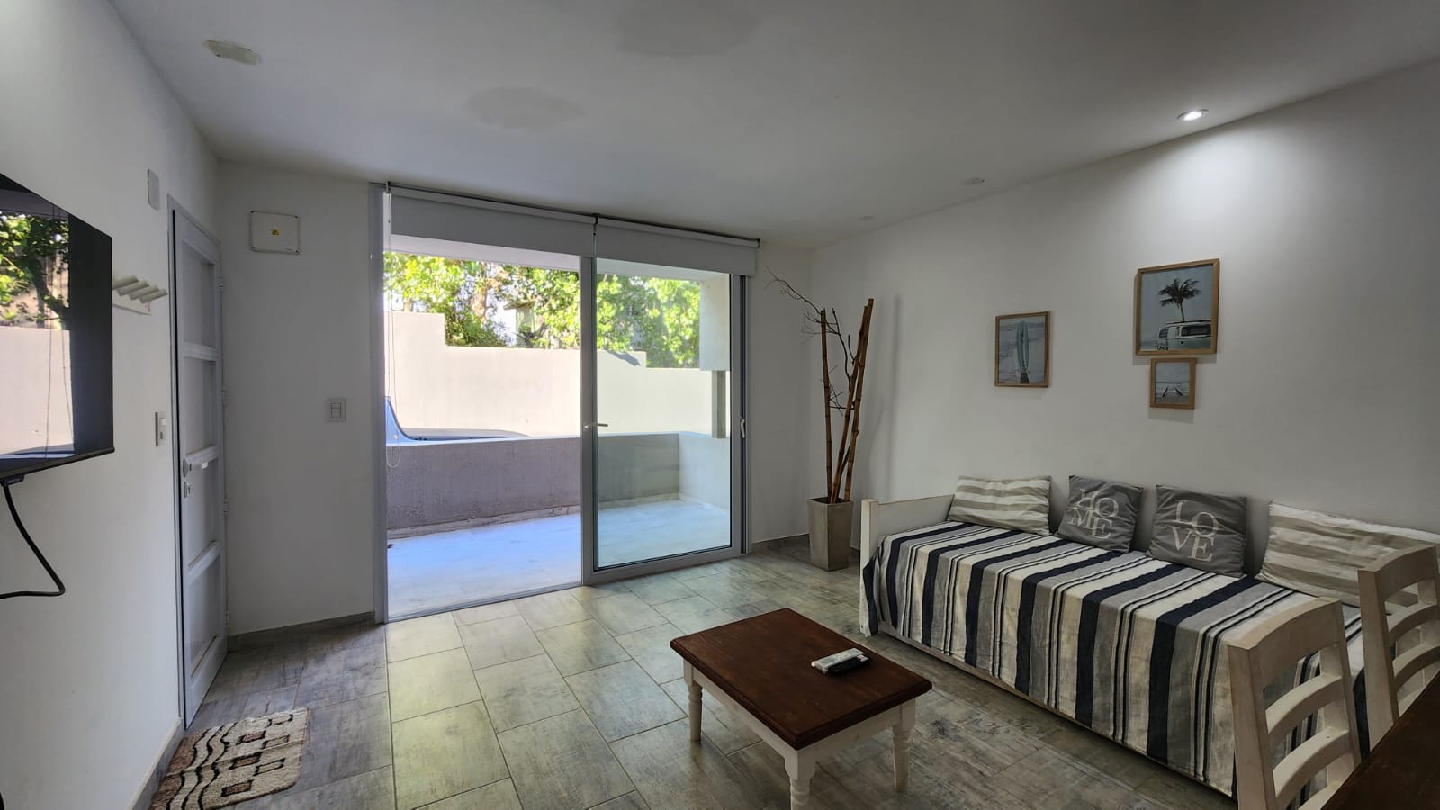 Tiene un pequeño balcón con fogón, al que se accede desde su imponente ventanal de piso a techo desde el living - comedor. Además cuenta con un patio interno propio de 15 m2.
