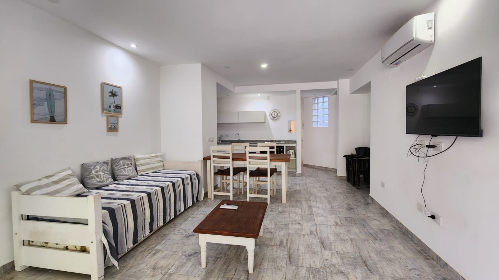 El departamento se ubica dentro del complejo de Playa Agreste II a tan sólo 50 metros del mar. Con orientación norte, emplazado entre dos unidades, que lo hacen muy fresco en el verano.