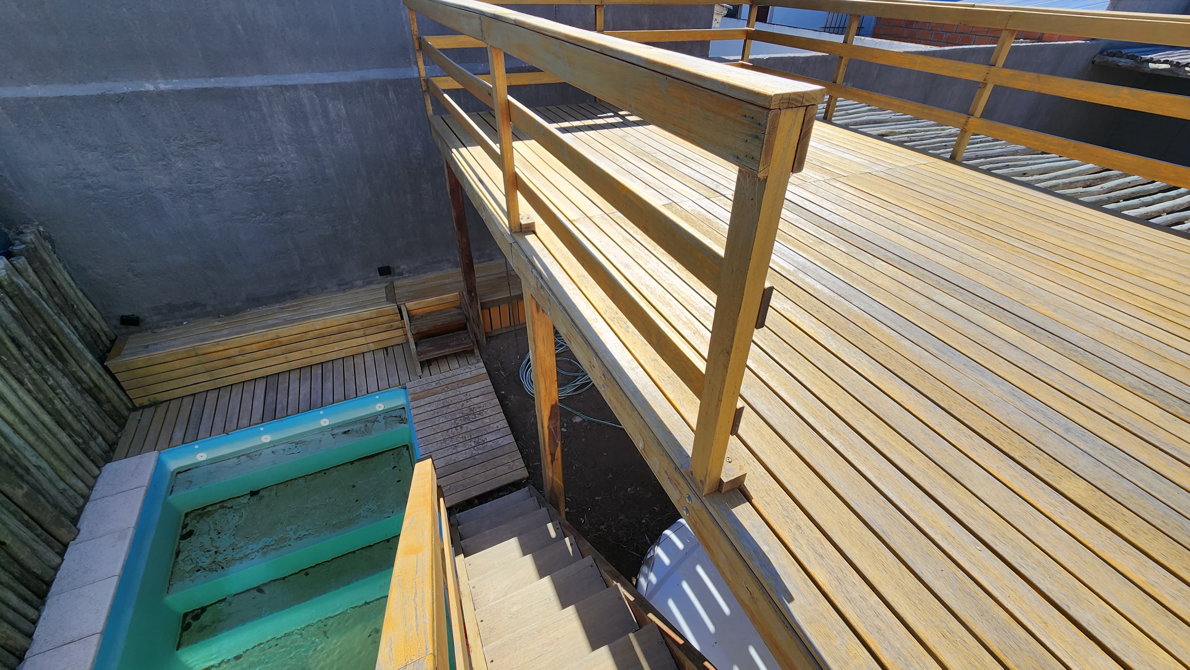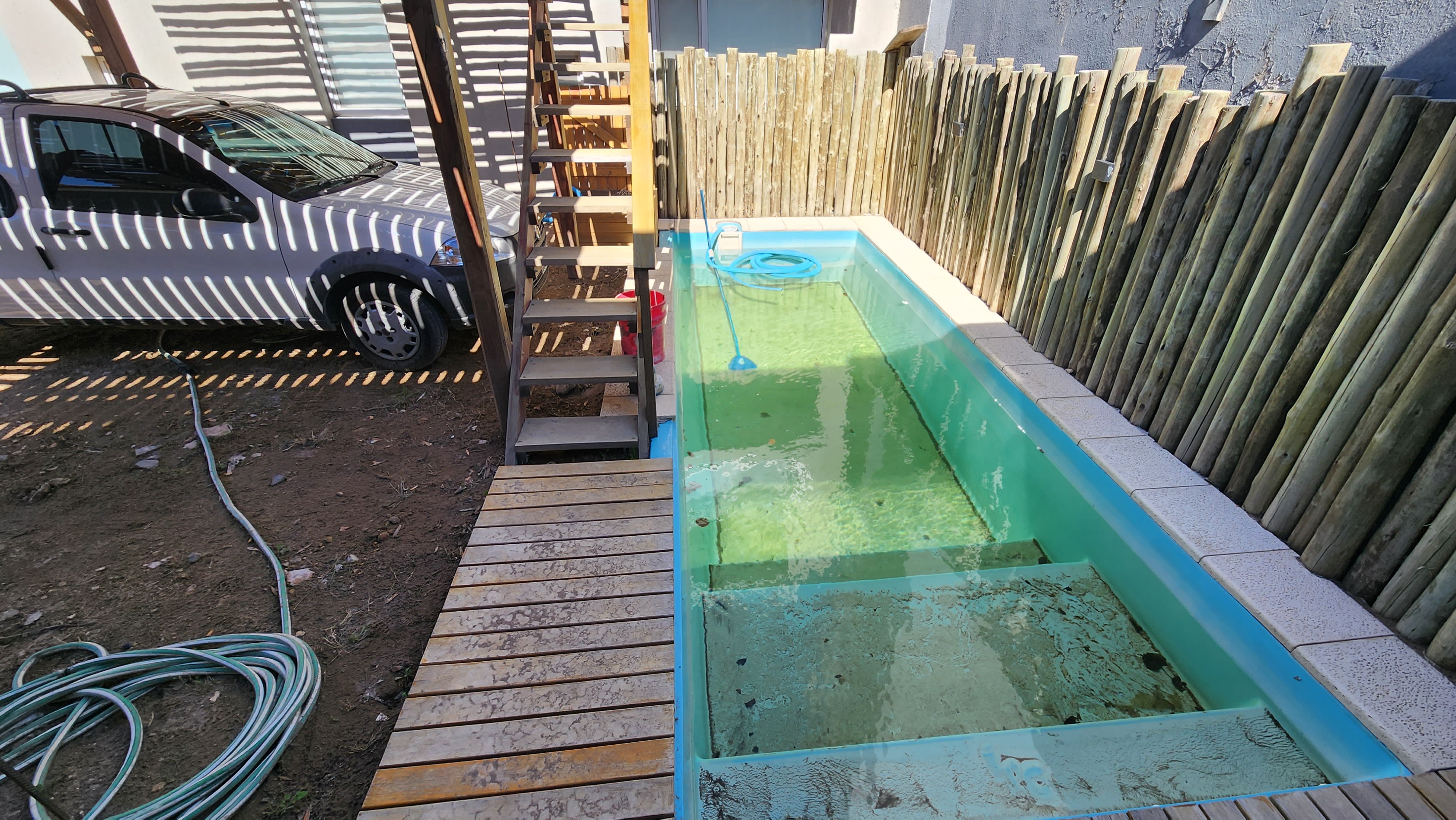 Posee una cochera descubierta y una piscina pequeña en espacios comunes.