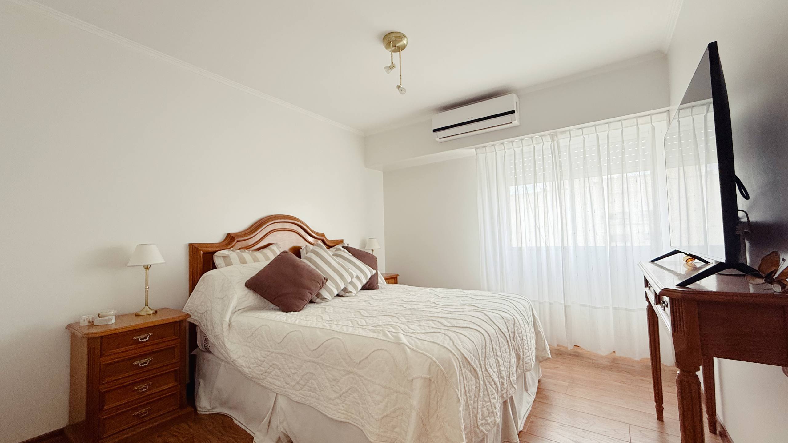 Living comedor amplio al frente con salida al balcón , comedor diario separado , cocina con muy buen amoblamiento , lavadero separado , baño completo y de recepción , amplio vestidor y dos dormitorios con placard .