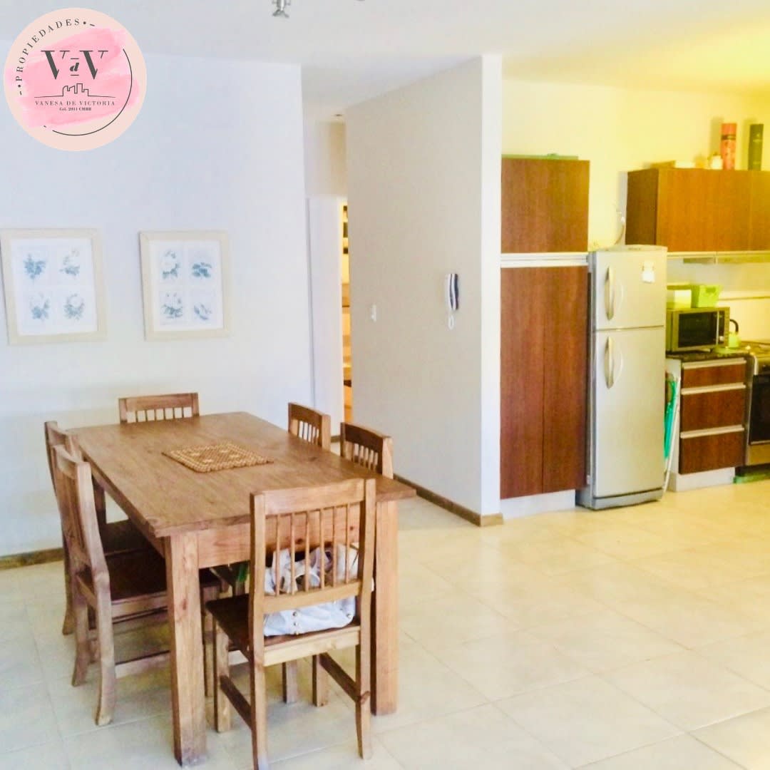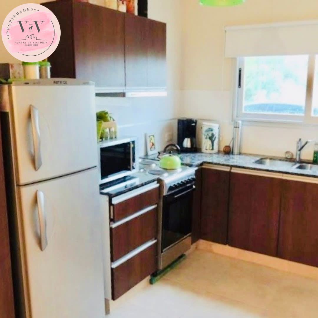 Incluye heladera, microondas, juego de mesa y sillas, y sillones entre otros
