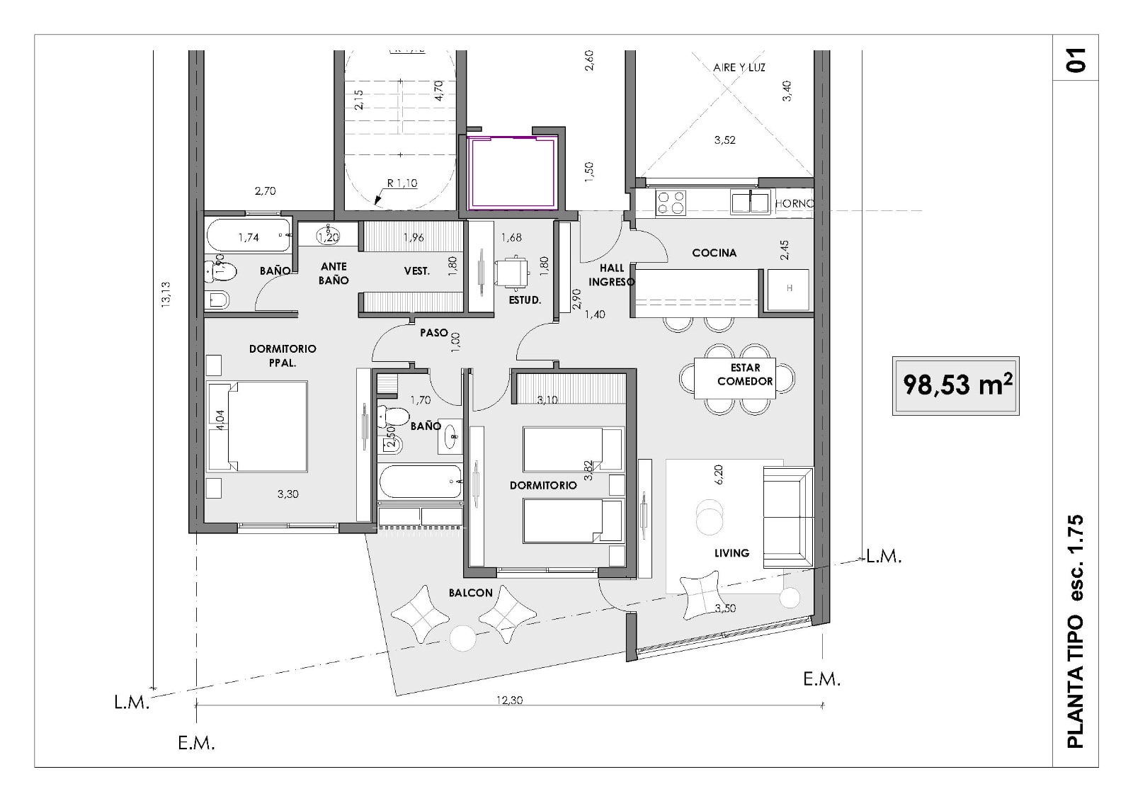 Cuenta con 2 dormitorios (uno de ellos en suite con vestidor), 2 baños, living comedor, cocina, espacio para estudio y balcón.
