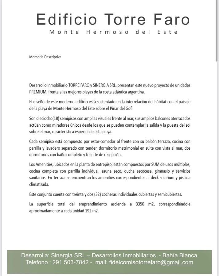 FIDEICOMISO EN CONSTRUCCION DE SEMIPISOS DE 3 DORMITORIOS, UNO DE ELLOS EN SUITE CON VESTIDOR, OTRO BANO COMPLETO Y TOILETTE, COCINA CON PARRILLA, LAVADERO CON PEQUENO BALCON INTERNO Y LIVING AL FRENTE CON IMPRESIONANTE VISTA AL MAR Y GRAN BALCON.
