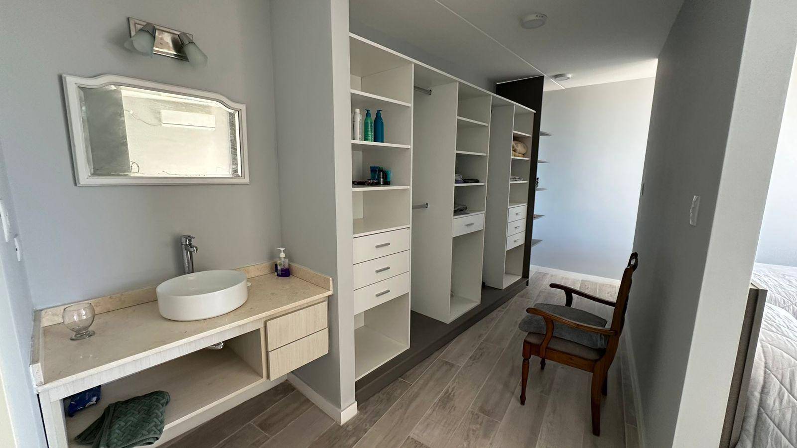 Tres dormitorios, dos de ellos con placar completos y un tercero en SUITE con AMPLIO BALCÓN con vista al mar y al pinar. Amplio vestidor y baño completo, compartimentado, con ventilación natural.