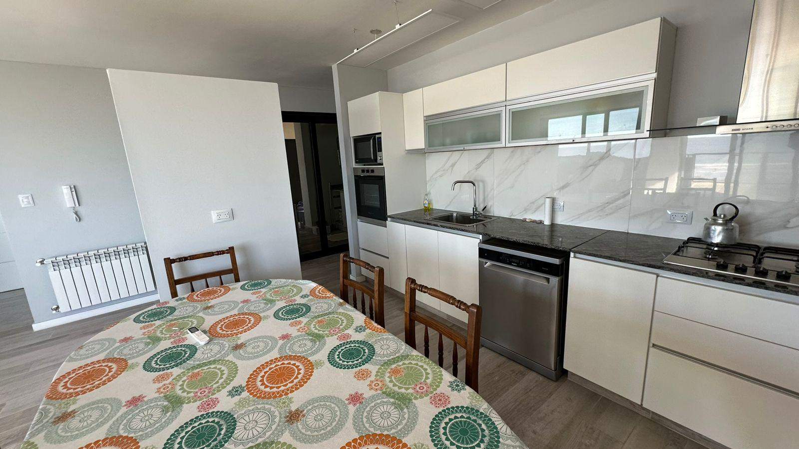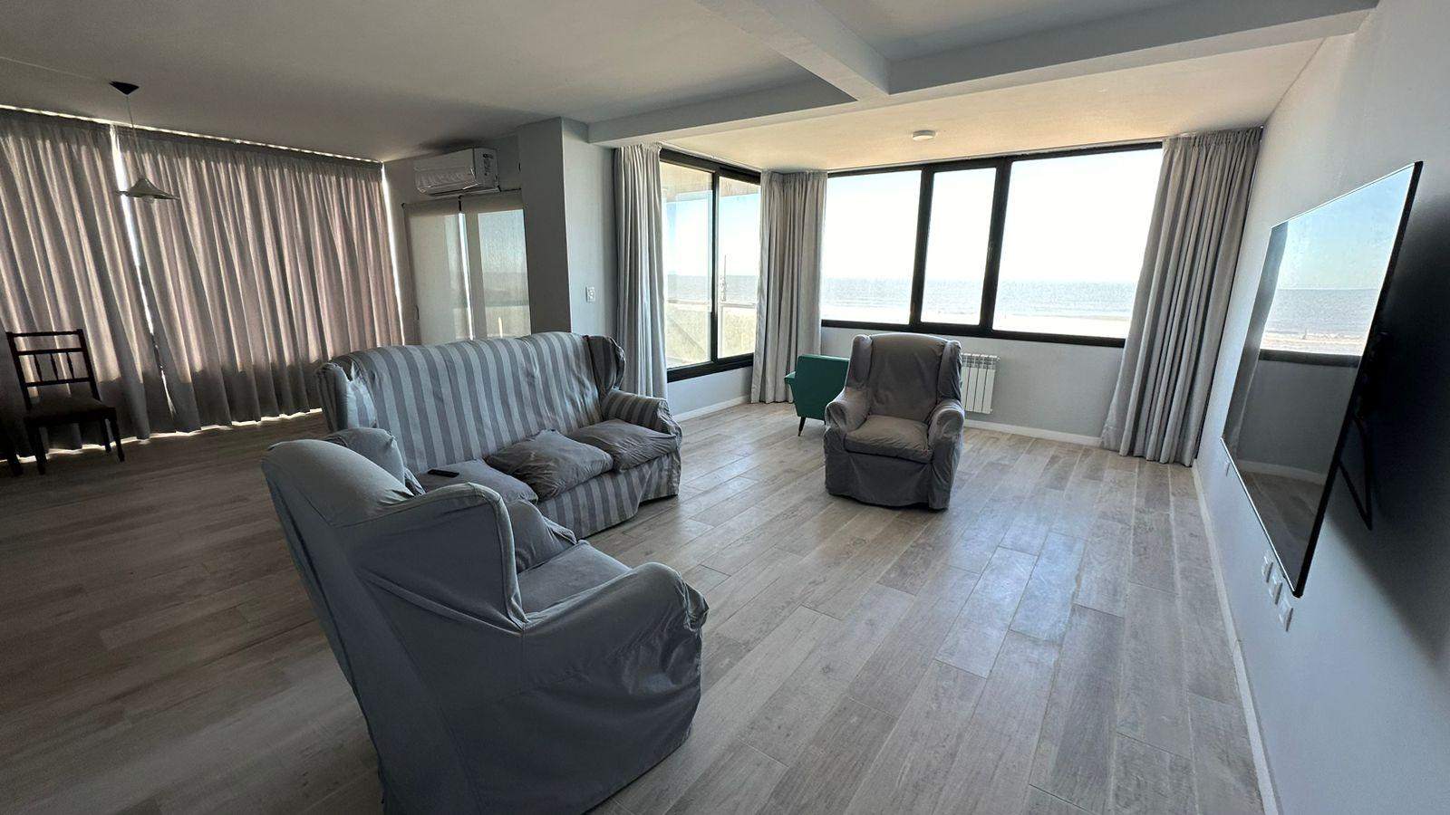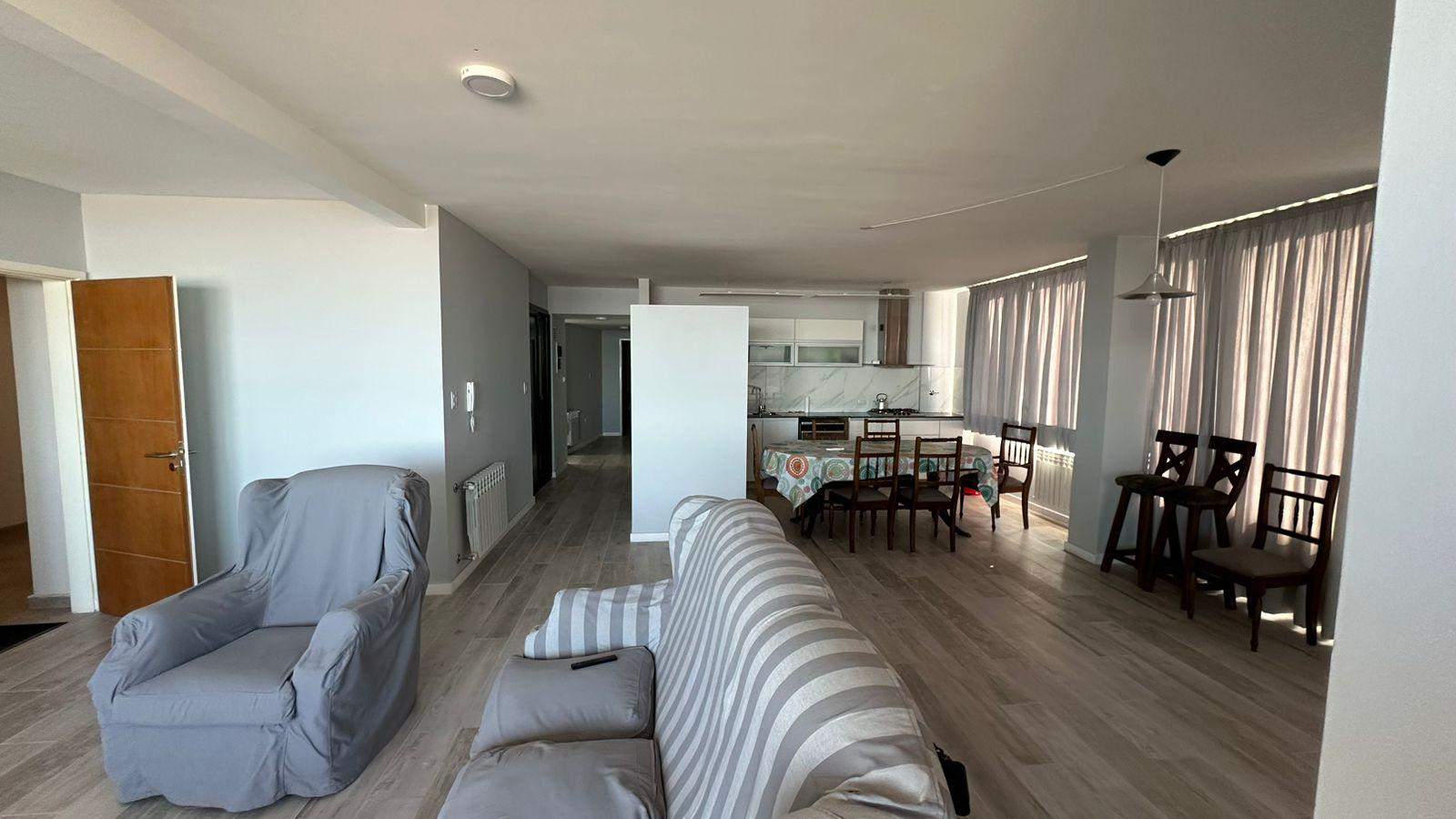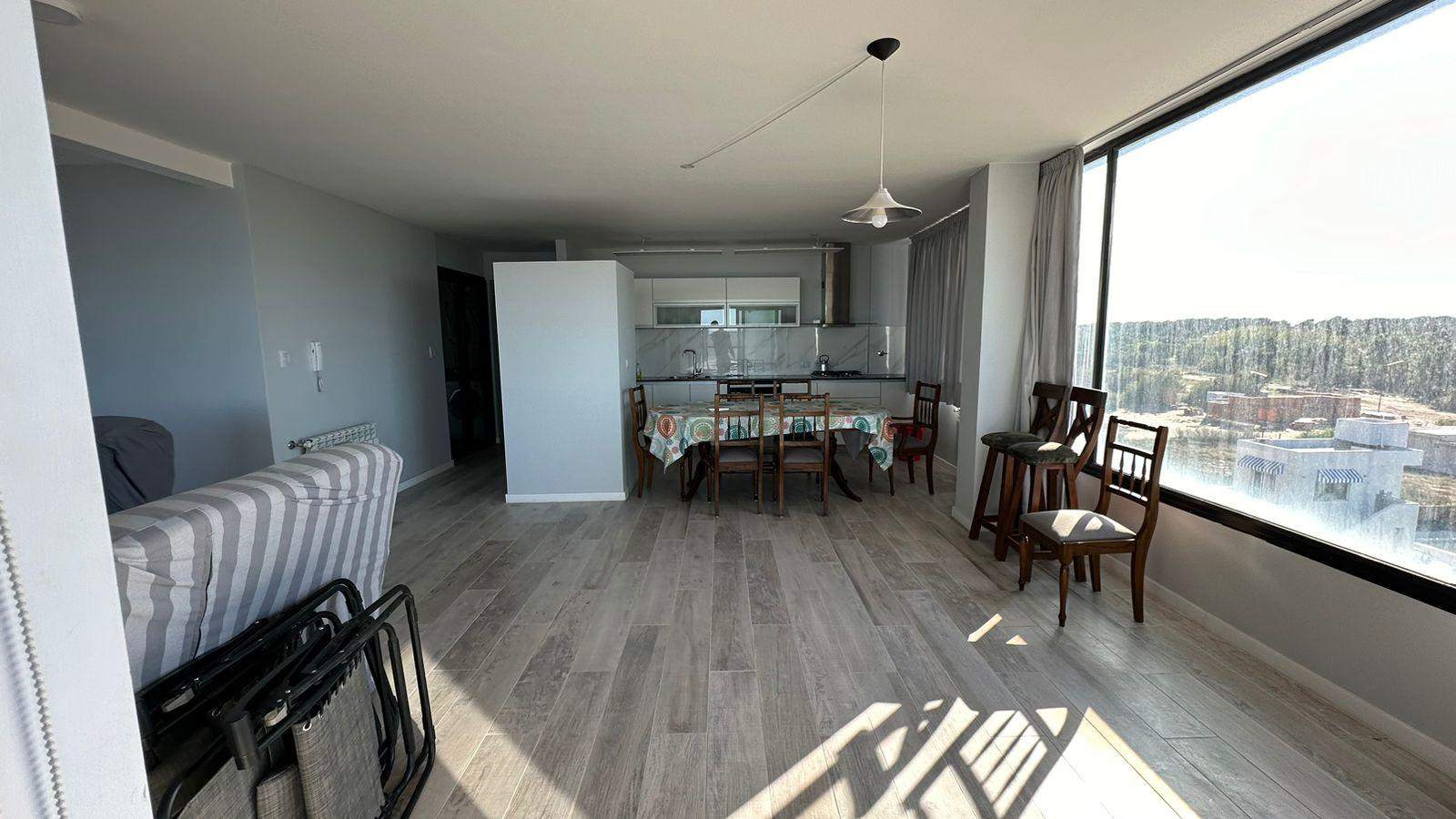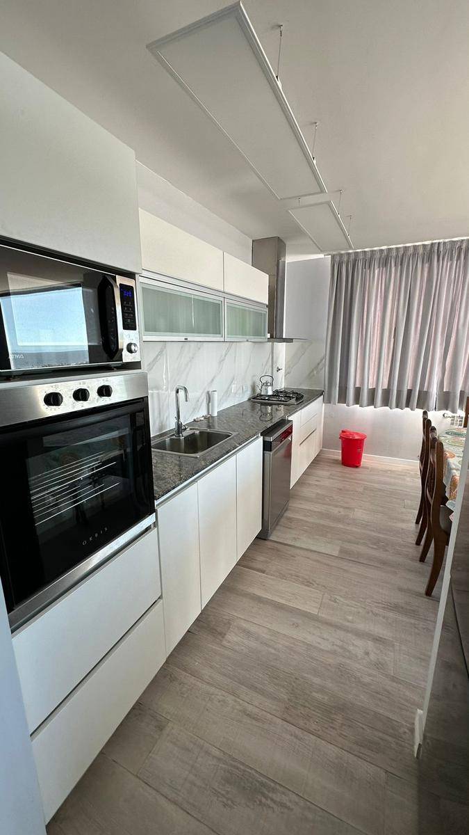 Vista a la playa desde todo el living, comedor y cocina, de concepto integrado, al desarrollarse en esquina, abarca toda la salida del sol y la puesta del sol frente al mar, en piso 4 con imponente vista de 180°. Amplio living, comedor diario y posibilidad de un segundo espacio de sillones, con salida a balcón / terraza, de vista panorámica. Cocina muy amplia, con buena cantidad de alacenas y lugar de guardado, posibilidad de agregarle una isla o barra desayunadora. Horno y anafe de primera calidad, impecables. Lavadero separado, con pileta de lavar y alacenas. Fogón y mesada. Lugar para tender con ventilación al contrafrente.