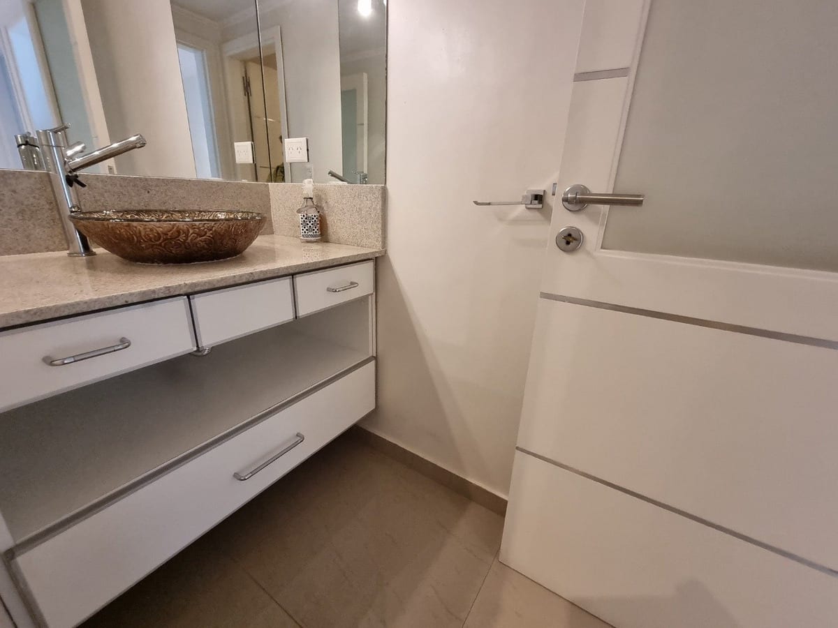 Living / estar amplio con total protagonismo de la luz con frente de piel de vidrio, con hermosa vista. Excelente BALCÓN / TERRAZA. Tres dormitorios (uno en suite con amplio vestidor). Baño completo compartimentado y toilette de recepción.