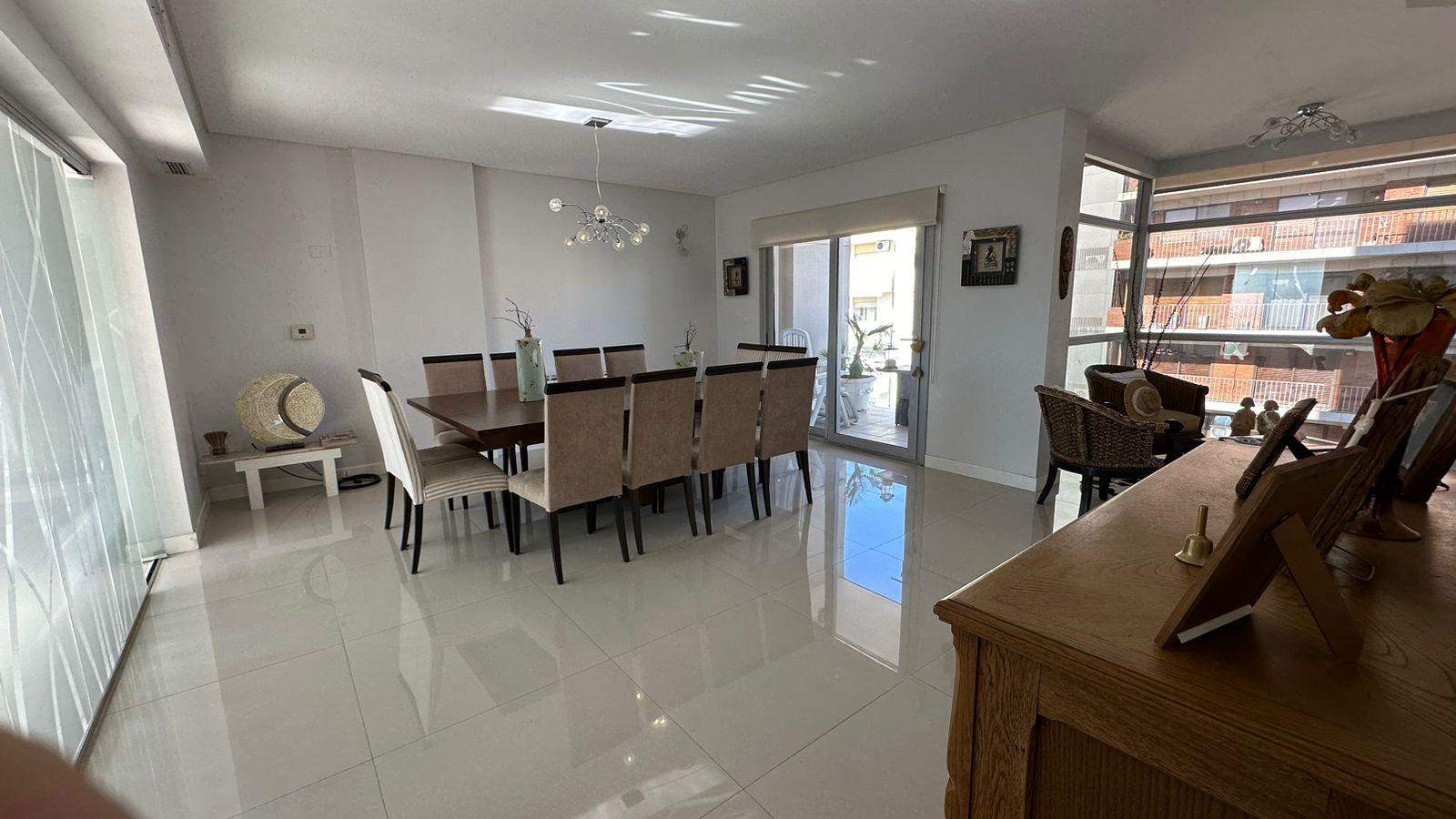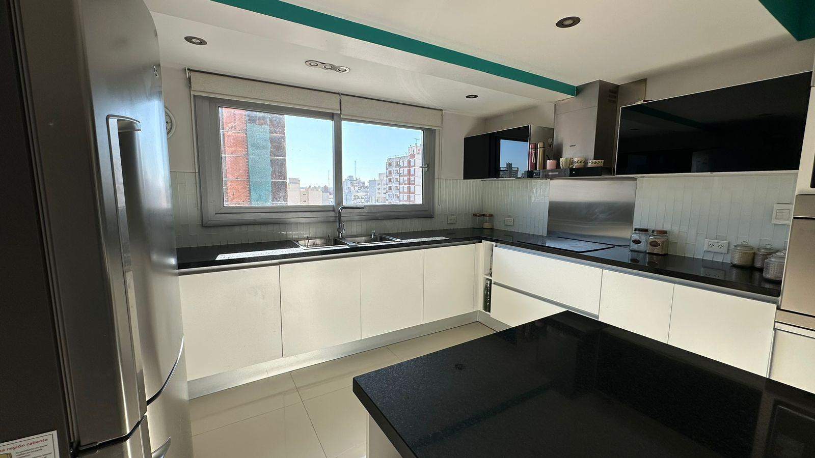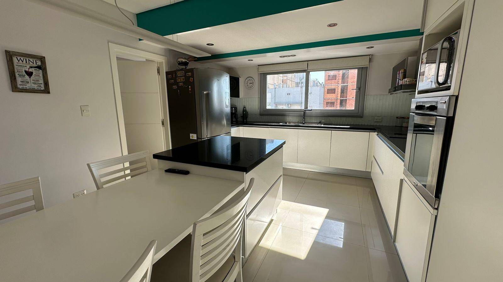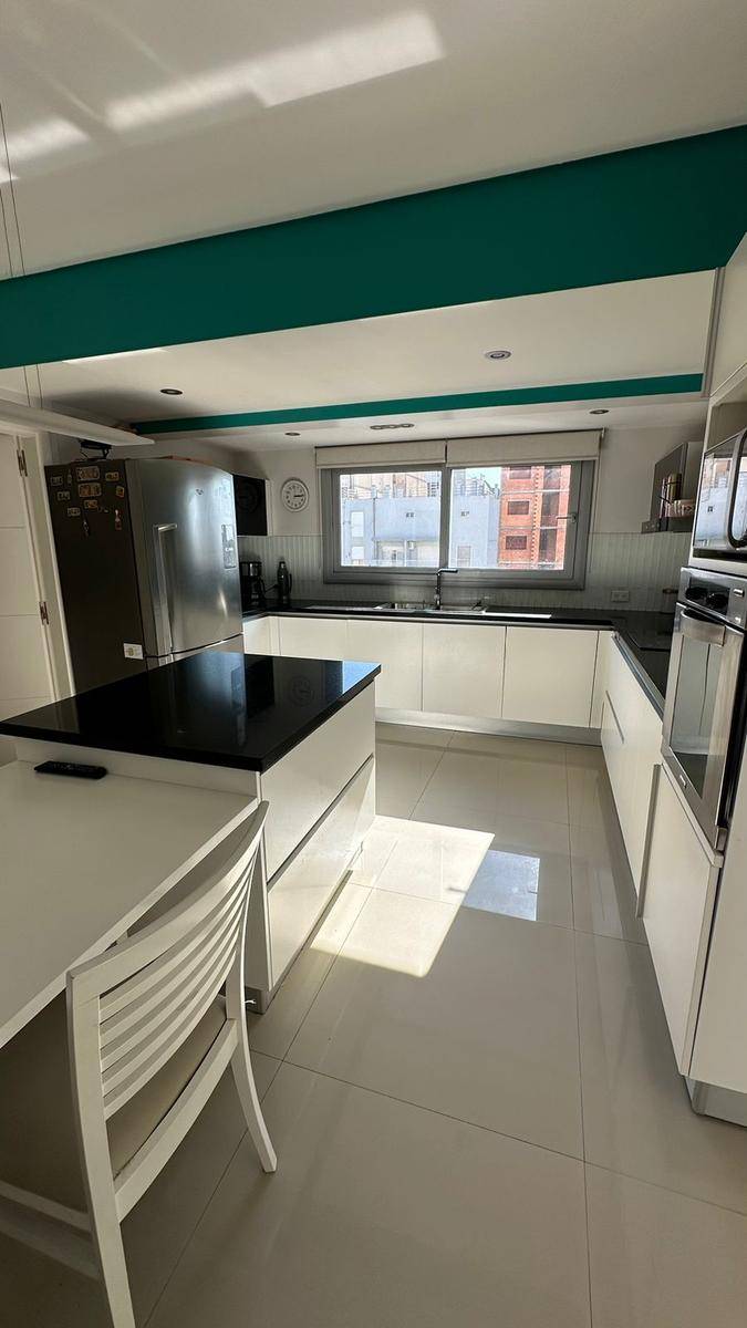 Amplia y moderna cocina semi-integrada al comedor con gran isla y parrilla incorporada en segundo comedor o sala de estar con la mejor vista e iluminación. Living / estar amplio con total protagonismo de la luz con frente de piel de vidrio, con hermosa vista. Excelente BALCÓN / TERRAZA. Tres dormitorios (uno en suite con amplio vestidor). Baño completo compartimentado y toilette de recepción.