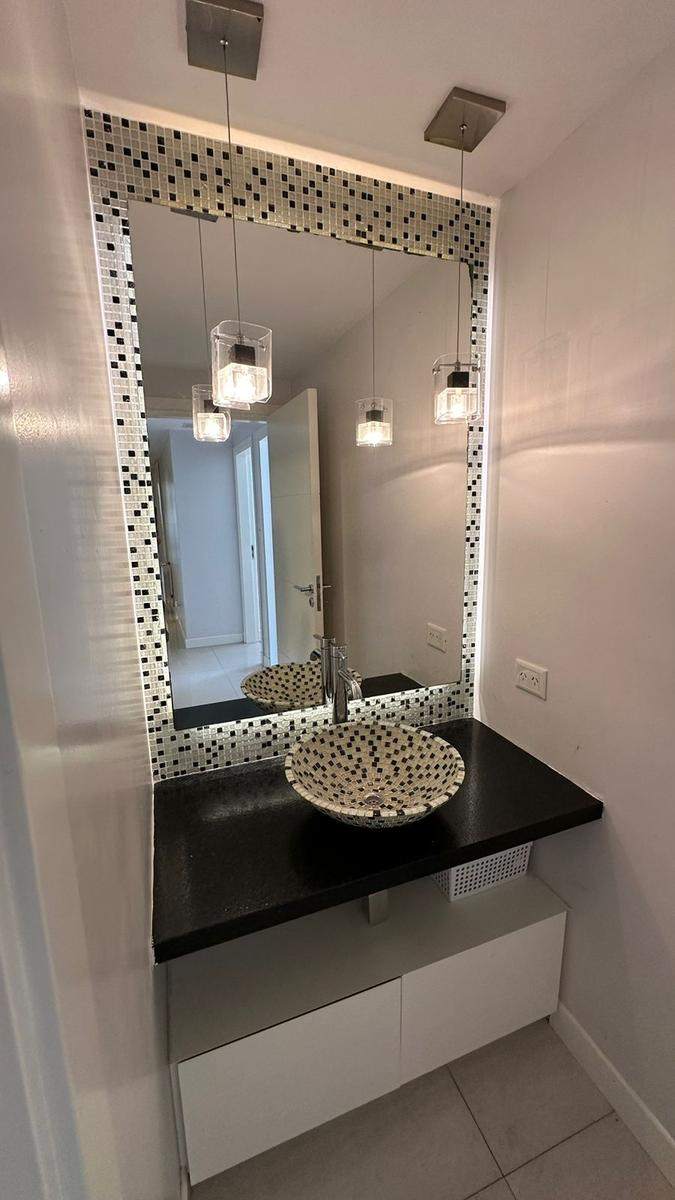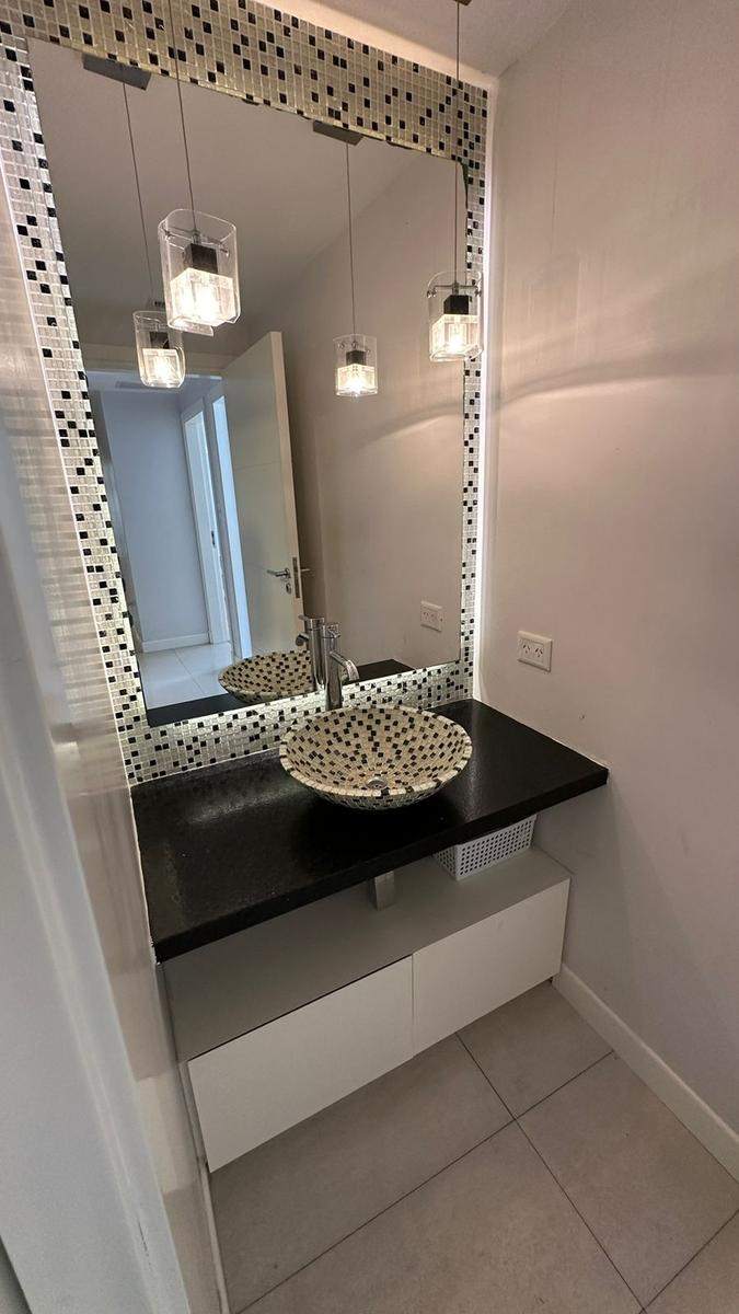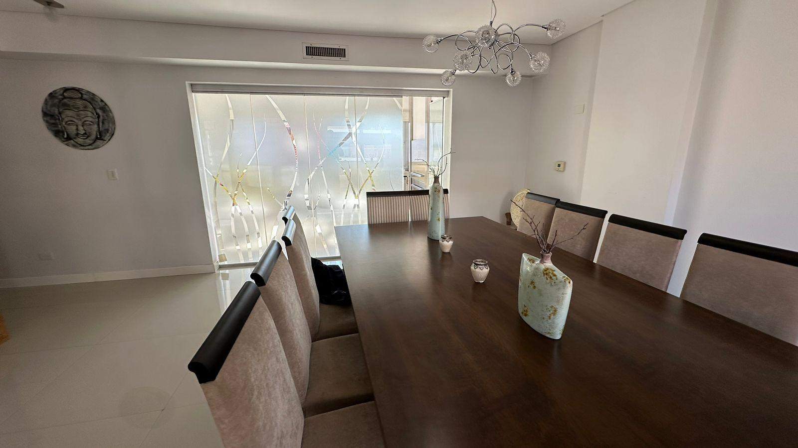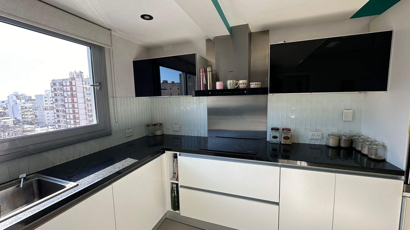 Amplia y moderna cocina semi-integrada al comedor con gran isla y parrilla incorporada en segundo comedor o sala de estar con la mejor vista e iluminación. Living / estar amplio con total protagonismo de la luz con frente de piel de vidrio, con hermosa vista. Excelente BALCÓN / TERRAZA. Tres dormitorios (uno en suite con amplio vestidor). Baño completo compartimentado y toilette de recepción.
