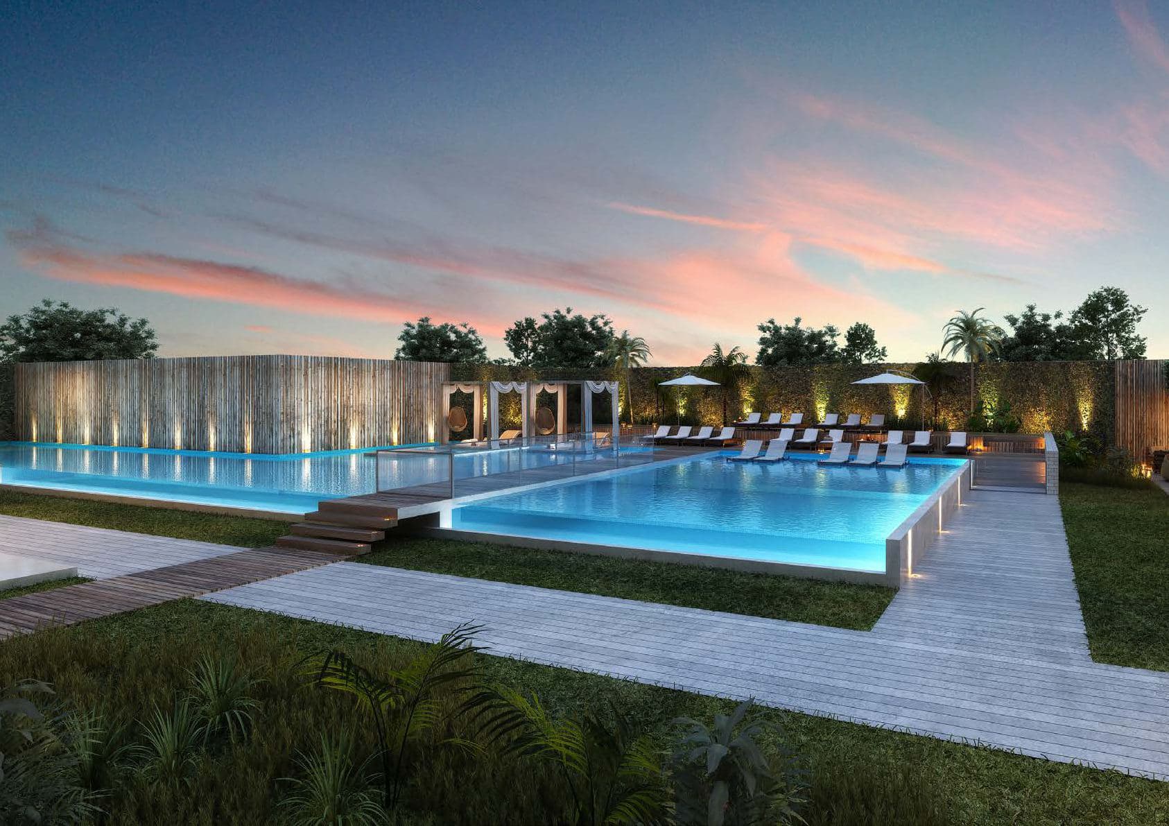 Playa húmeda y solárium aterrazado