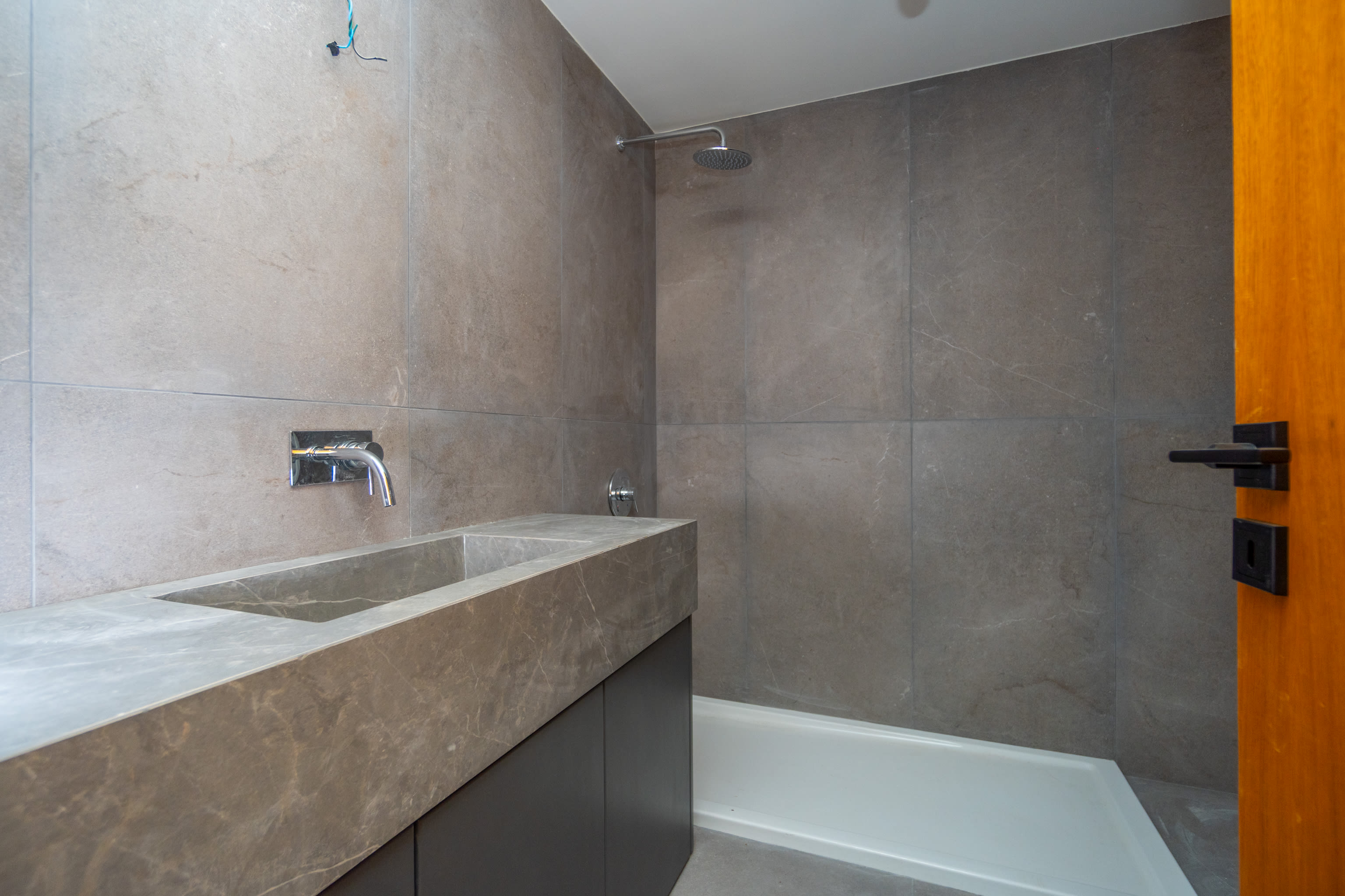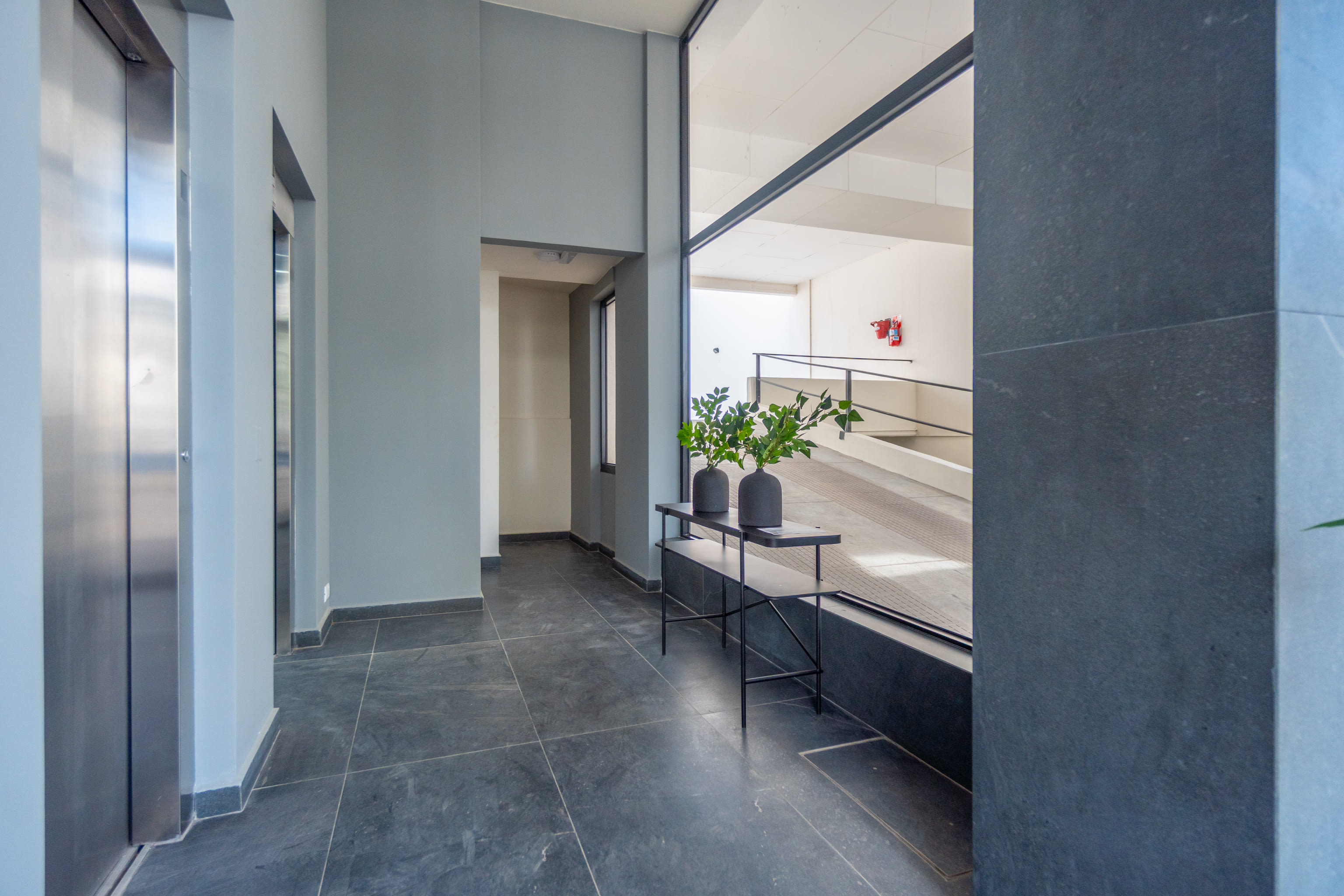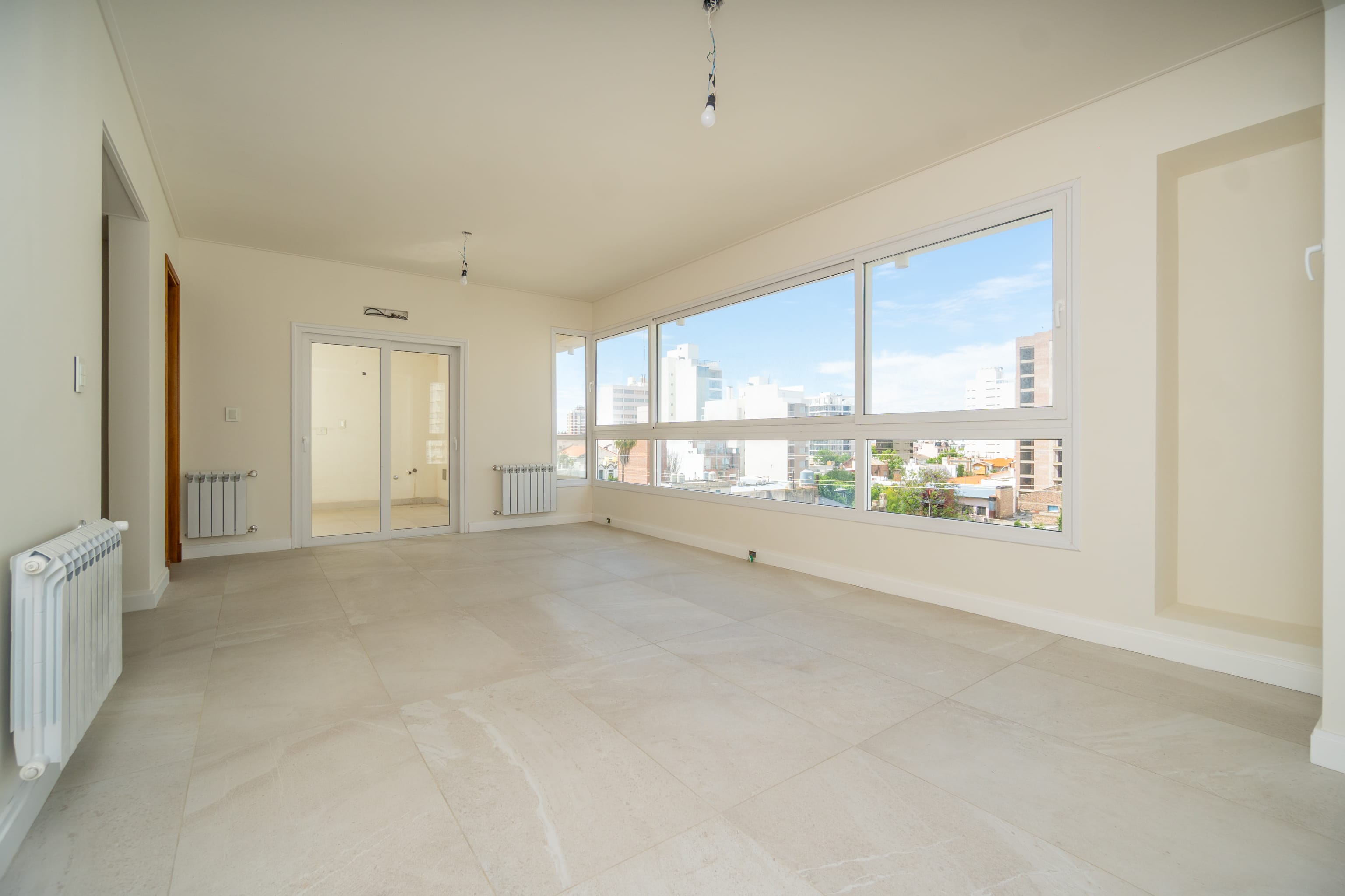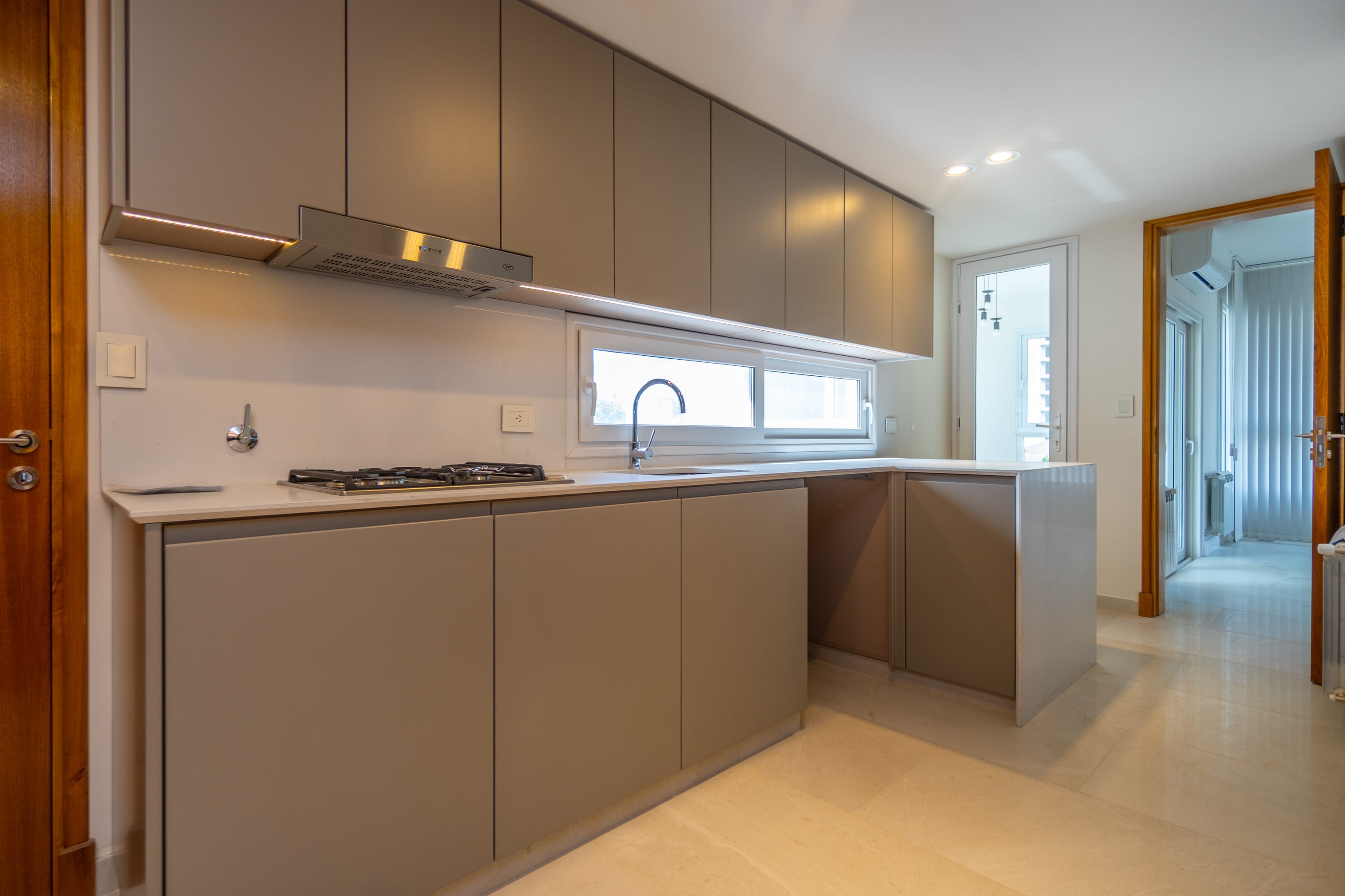 Carpintería a medida de piso a techo con estética moderna y uniforme. Aberturas PVC con DVH garantizando confort térmico y acústico.