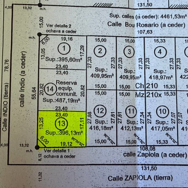 Lote ubicado en excelente esquina Zapiola e Indio. Superficie total de 396 m², ideal para desarrollar proyectos comerciales o residenciales. Acceso por asfalto por calle Zapiola. Servicios: agua corriente, luz, gas natural y desagüe cloacal.