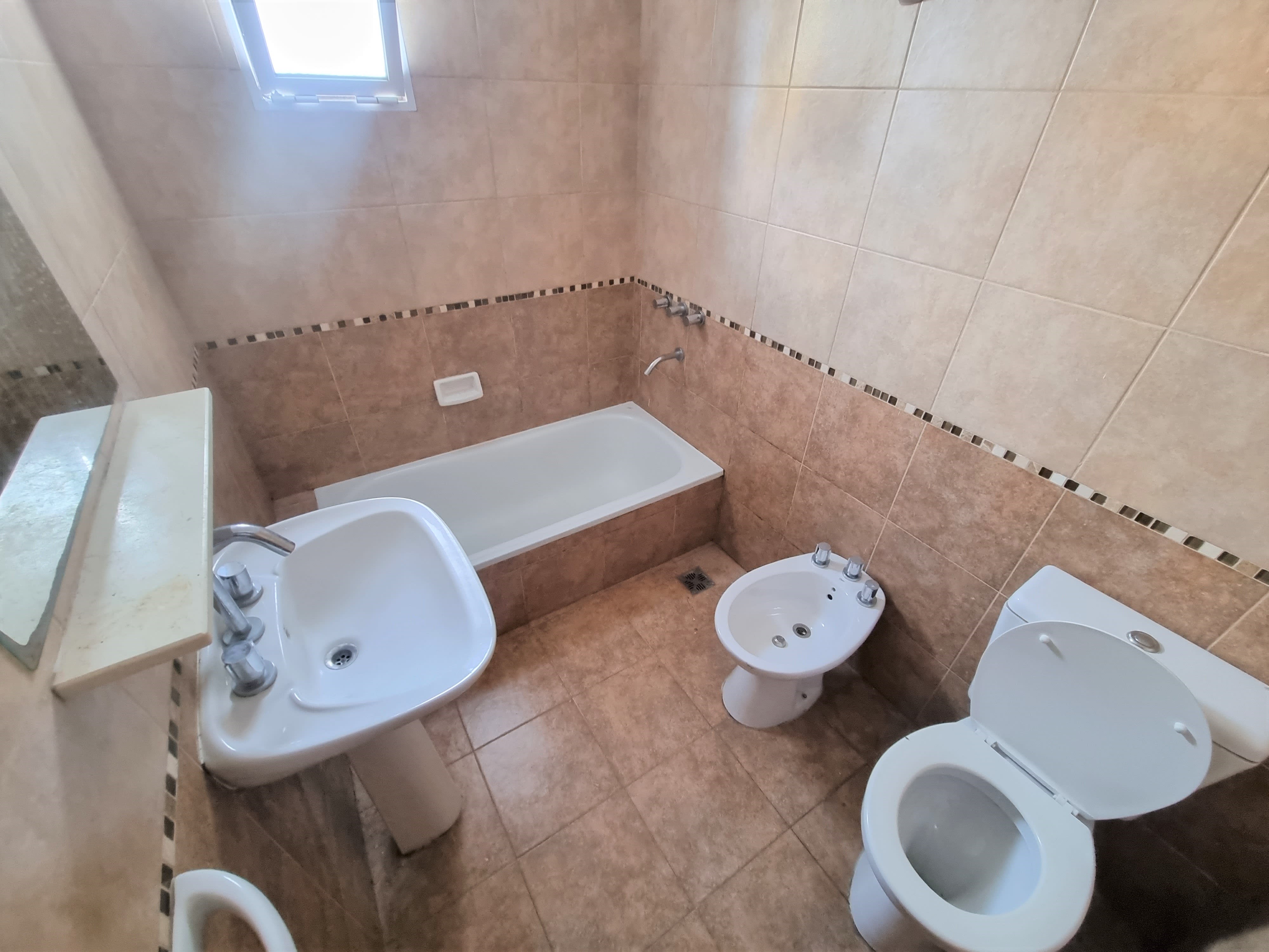 Baño completo en planta baja con bañera y ventana a patio.