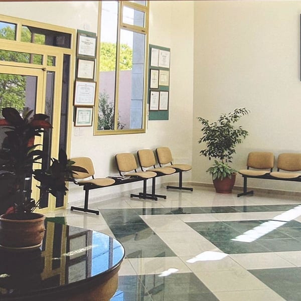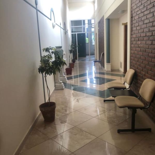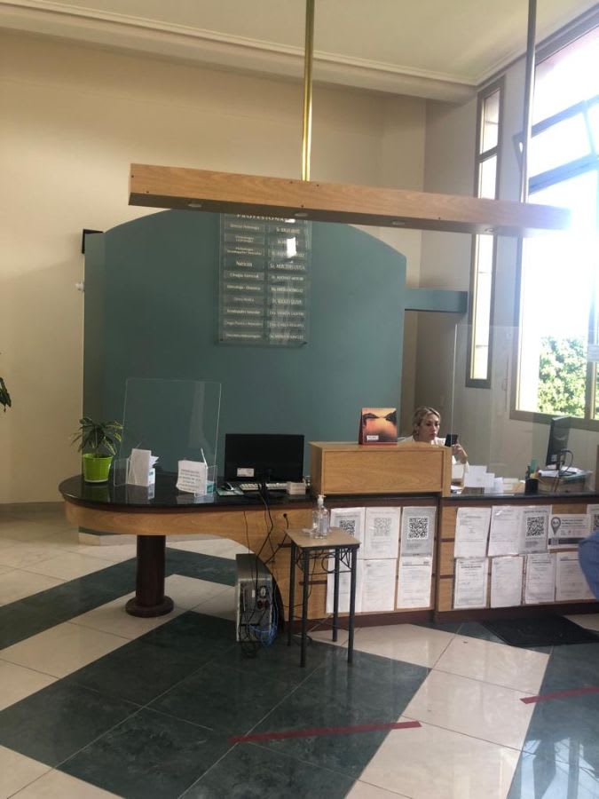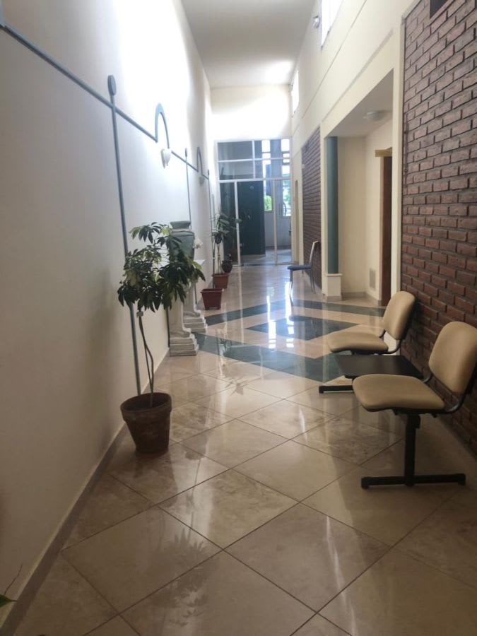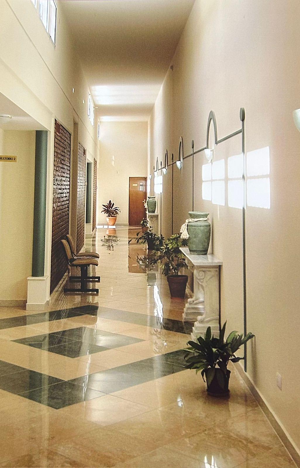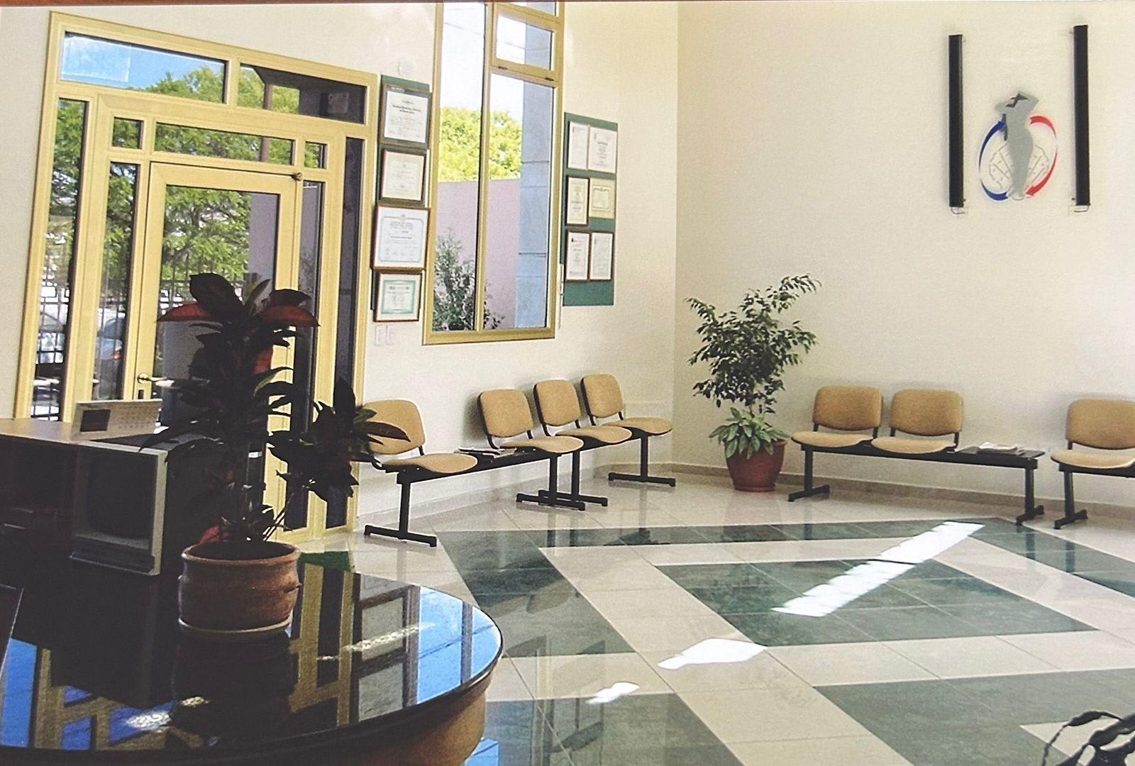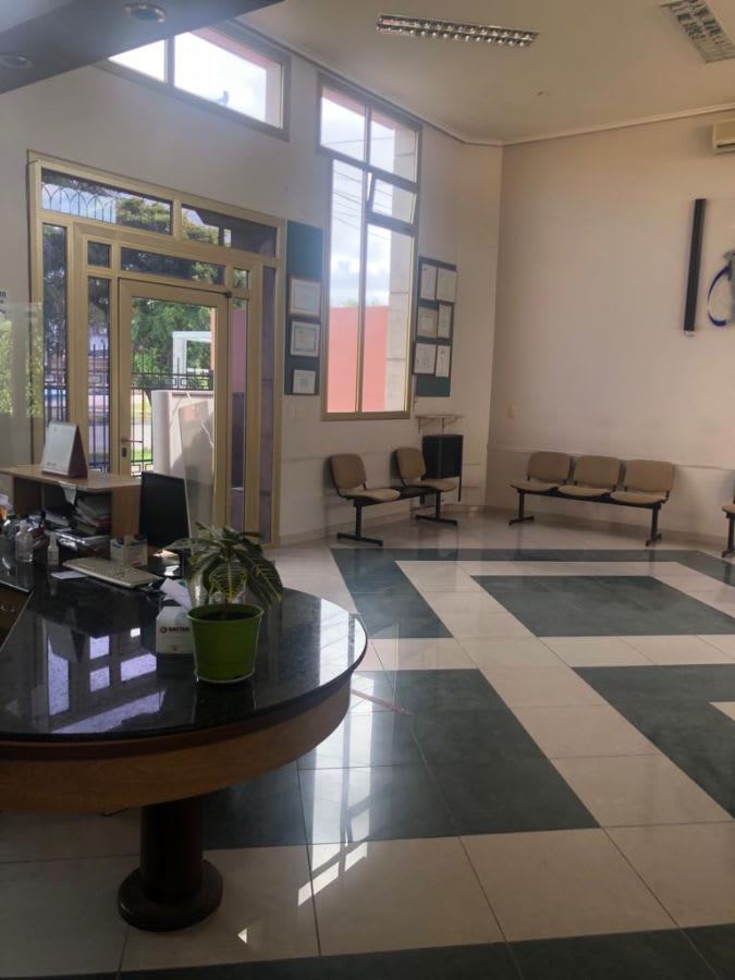 Desarrollada en una planta, compuesta de rejas al frente, muy amplia sala de espera, cinco privados con ventanales al exterior, sala de reuniones, se accede a estos ambientes por espacioso corredor. Sanitarios ambos sexos. Sanitarios para personal.