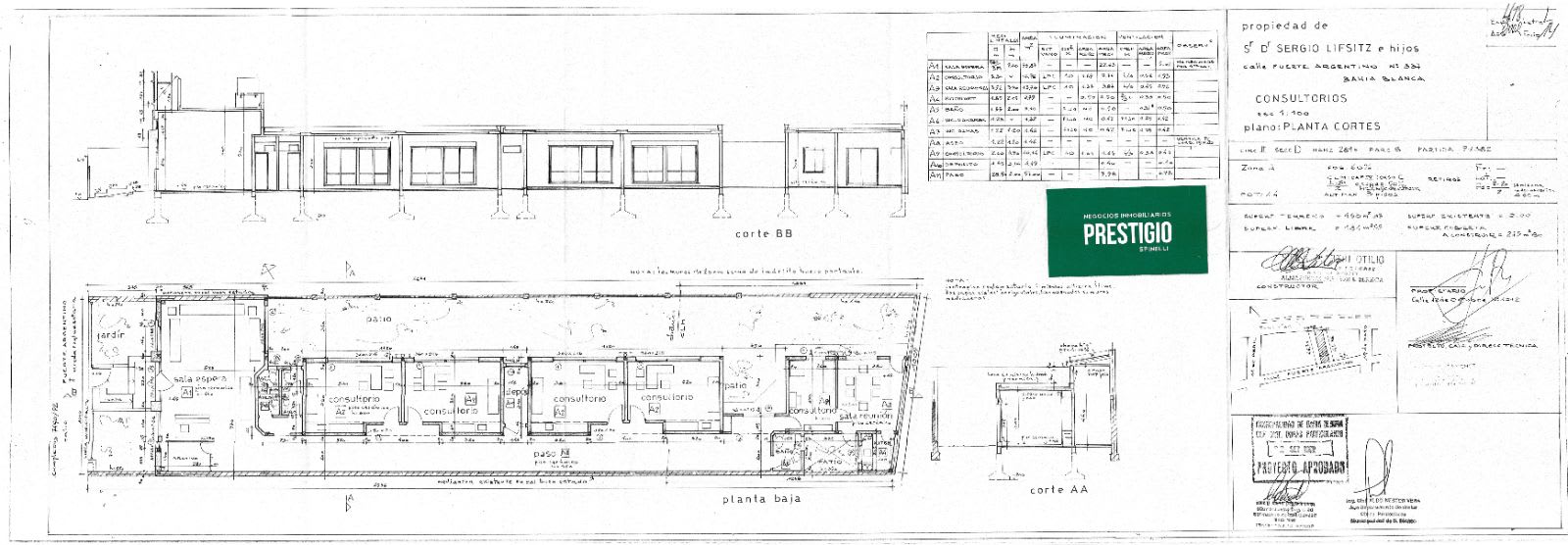 Kitchenette y salita depósito para archivo. Todo construido sobre un terreno 10 m x46 m (aprox,), quedando una superficie libre aproximada de 215 m2. Perfectamente parquizados y con sistema de riego por aspersión.