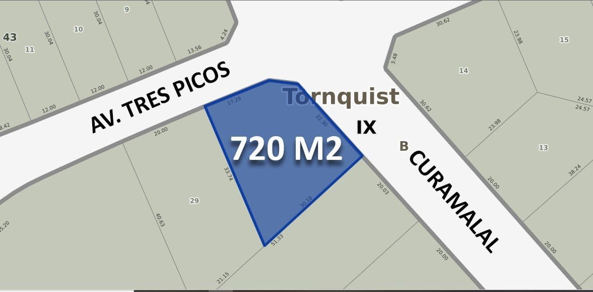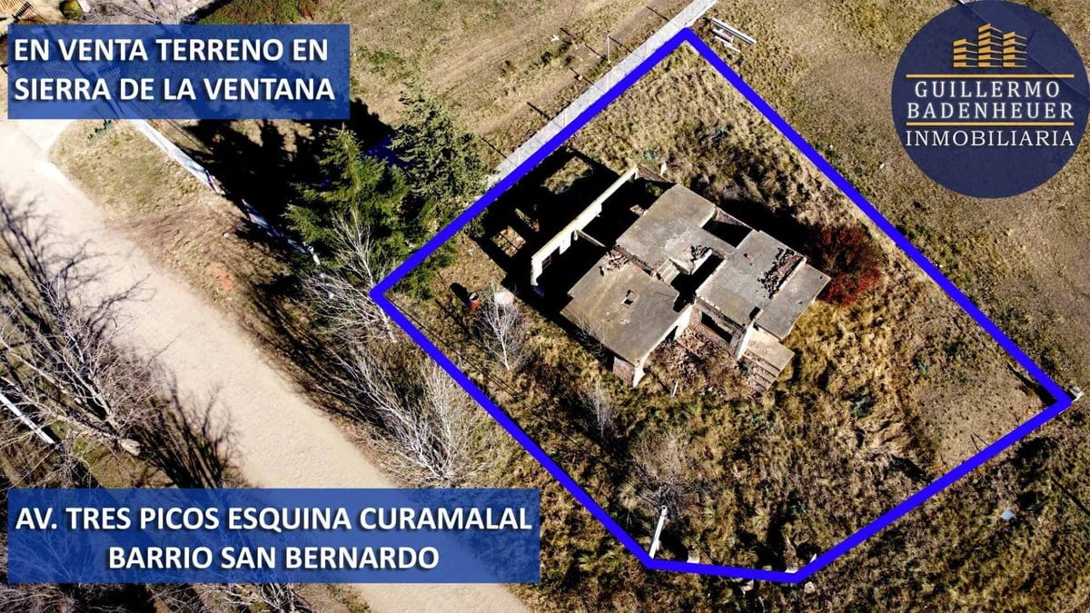 TERRENO EN VENTA EN SIERRA DE LA VENTANA. Espectacular esquina sobre avenida Tres Picos esquina Curamalal, en Barrio San Bernardo. Doble frente de 10 metros y 25 metros, con fondo de 30 y 33 metros (perimetro irregular muy atractivo). Son 720 metros cuadrados con aptitud para desarrollos unifamiliares y multifamiliares. Uso de Suelo R1: Residencial - Comercial - Temporario. FOS: 0,50. FOT Residencial y Temporario: 1,00. FOT Comercial: 1,50. Dens: 150/ha. Retiro de frente: 3 mts. Retiro de fondo: 20 porciento. Altura máx. Residencial y Temporario.: 7,50 mts. Altura máx. Comercial: 9,00 mts. Vení a conocelo. MANDANOS UN WHATSAPP PARA CONCRETAR UNA VISITA AL 2915039957.