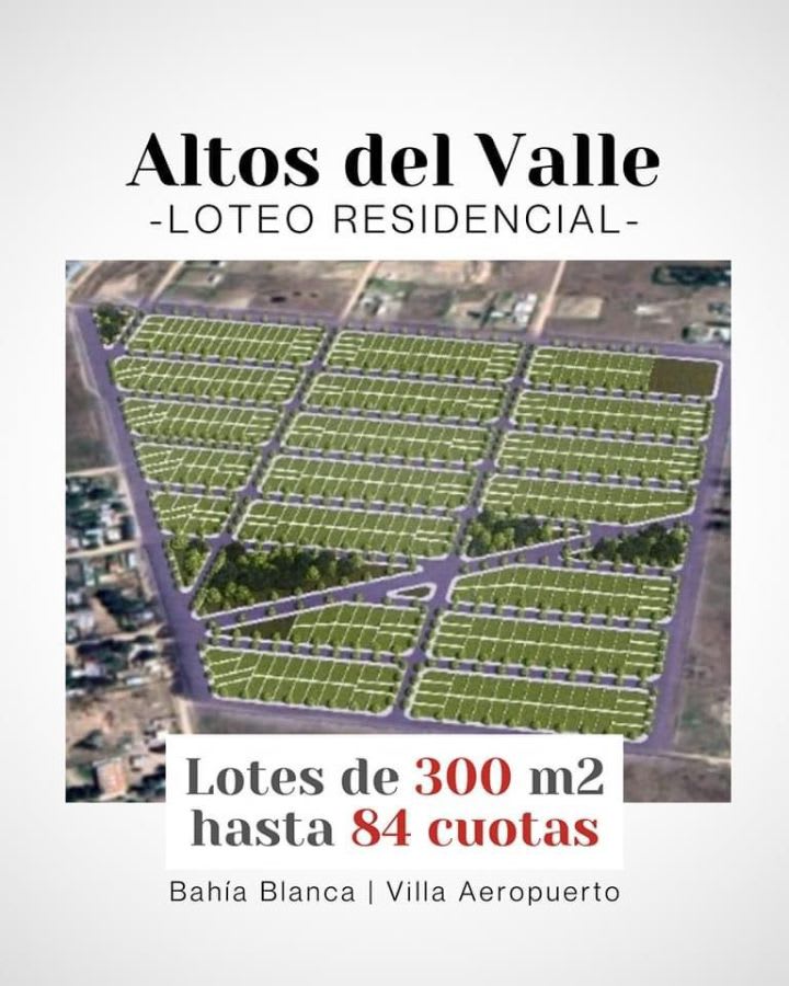 En venta LOTEO ALTOS DEL VALLE - Loteo Residencial FINANCIADO HASTA EN 80 CUOTAS. Lotes de 300 mts.