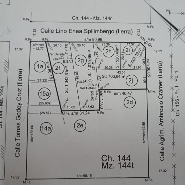 SE VENDEN 5 LOTES EN CALLE SPILIMBERGO ENTRE CRAMER Y GODOY CRUZ